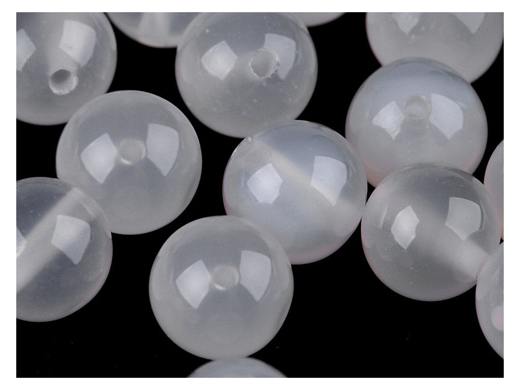 Přírodní minerální korálky z bílého achátu jsou jedinečné svou poloprůsvitnou, mléčnou barvou. Svou velikostí jsou ideální na výrobu Buddhových náramků a jiných šperků. Jsou oblíbené na techniku drátování, v kombinaci s drahými kovy, ale i s obyčejnými drátky. Skvěle vypadají i na jednoduchých návlekových šňůrách, které zajímavě ozvláštní.- Průměr: 6 mm