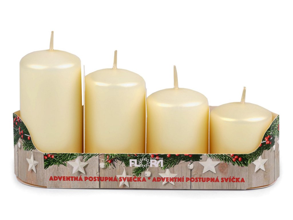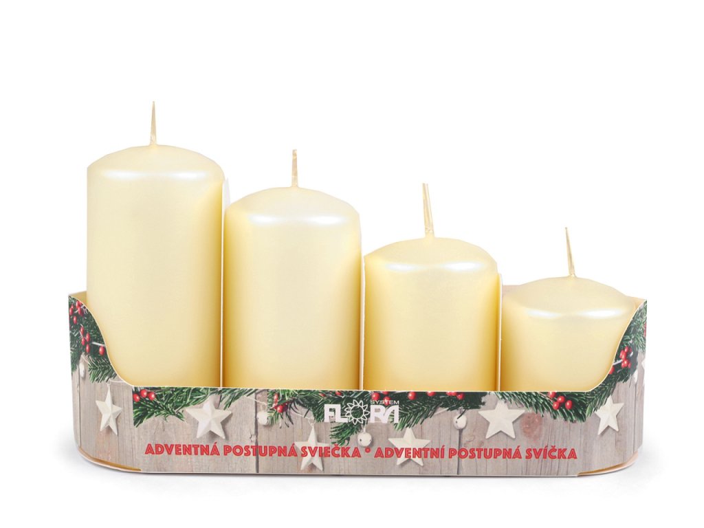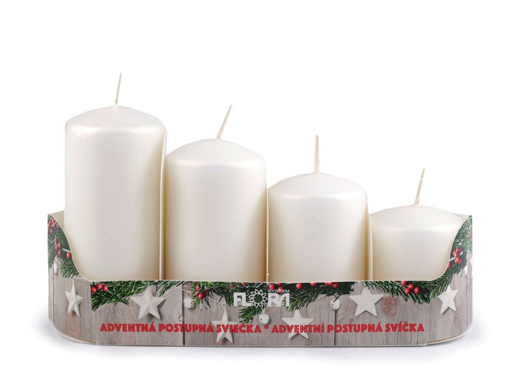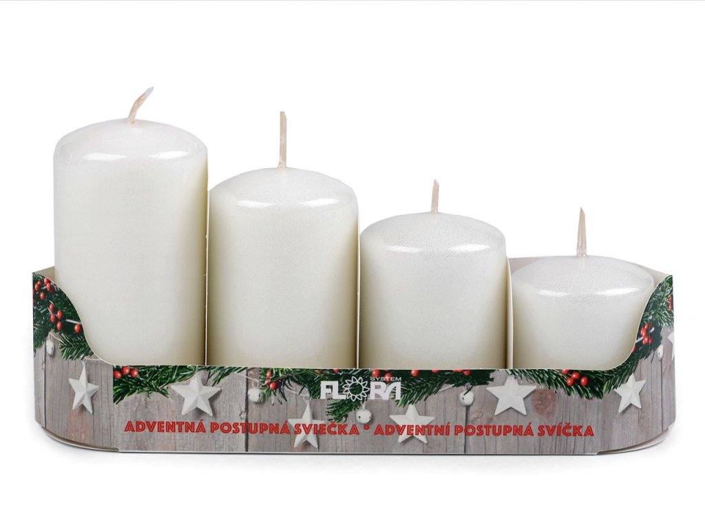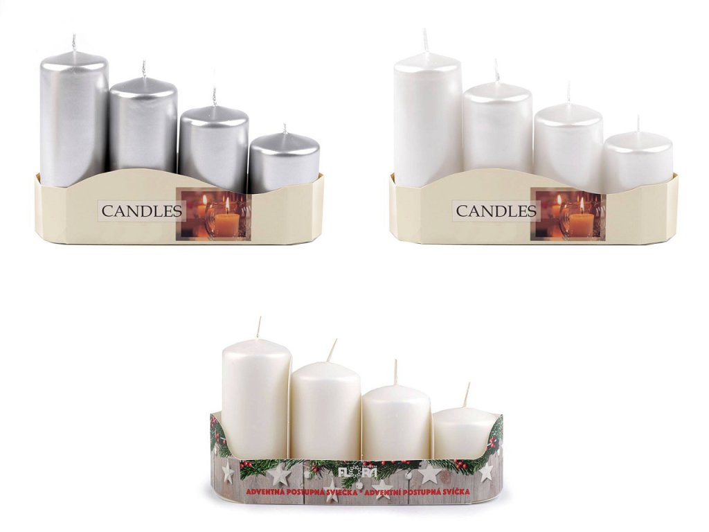 Adventní svíčky se skvěle hodí především na adventní věnec, díky svým sestupným velikostem. Ke svíčkám doporučujeme použít bodce na zapichování. Jedno balení obsahuje 4 svíčky. Varianty č. 9, 10, 11 mají výšku 6 cm, 7,5 cm, 9 cm a 10,5 cm. Doba hoření záleží na velikosti svíčky, od 11 do 33 hodin.- Průměr: 5 cm