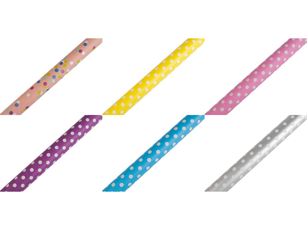 Puntíkovaný balicí papír je jednostranný, matný, dostatečně pevný. Je ideálním řešením pro každého, kdo chce přidat hravý a stylový prvek k balení dárků. Snadno se kombinuje s různými stuhami, mašlemi a dekoracemi. Je perfektní pro zabalení dárků na narozeniny, svátky nebo jiné speciální příležitosti, osloví děti i dospělé. Prodává se v roli. Papír č. 1 má průměr puntíku 6 mm. Papíry č. 2 - 10 mají průměr puntíku 8 mm.- Šíře: 70 cm