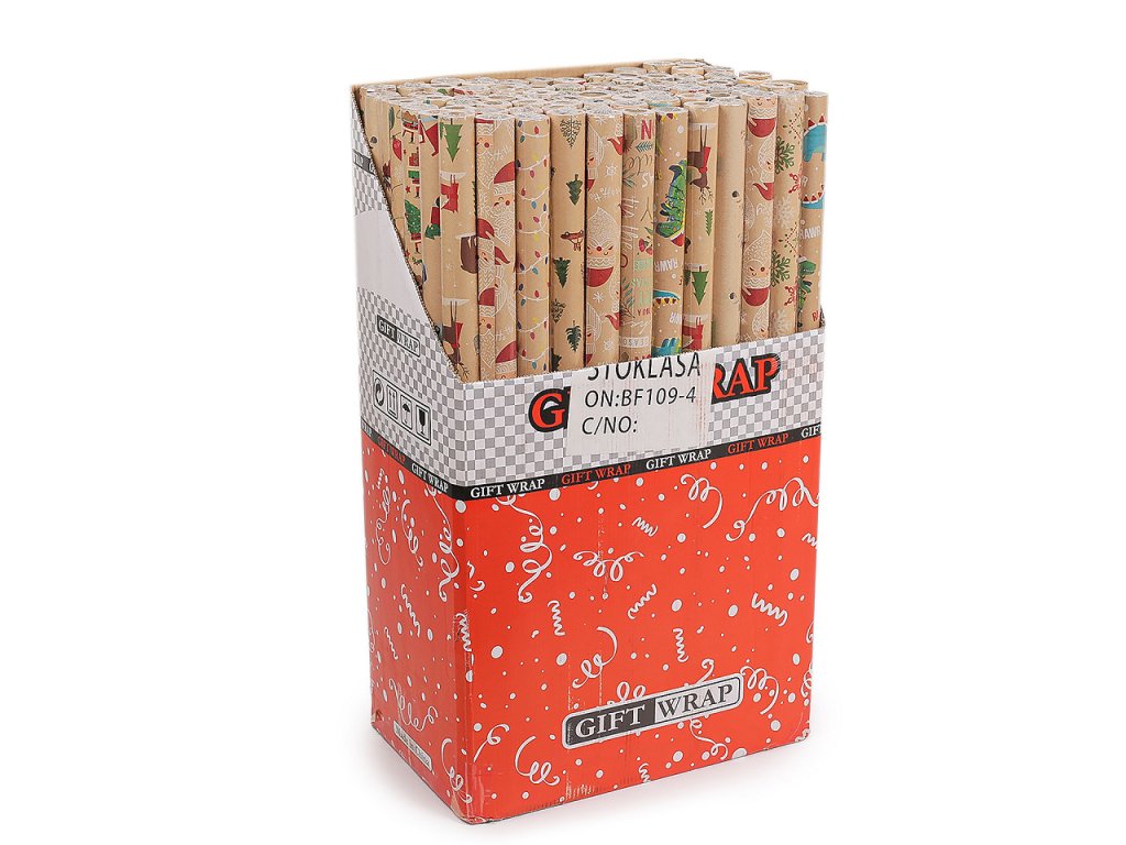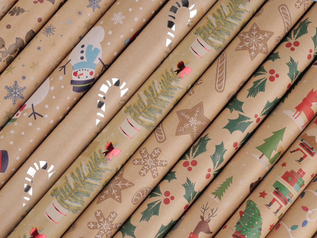 Přírodní balicí papíry s vánočními motivy využijete k balení dárků i ke stylovému aranžování. Jsou vhodné také na vystřihování - k podlepení na přáníčka, pozvánky, alba, krabice apod. Papír je v roli, která je zabalená do ochranné fólie. Velké balení 100 ks rolí je zabalené v originální prodejní krabici. Role uvnitř krabice se mohou trochu lišit jak motivy, tak počtem zastoupení rolí od jednotlivých typů. Vždy je počet dohromady 100 rolí.- Šíře: 70 cm