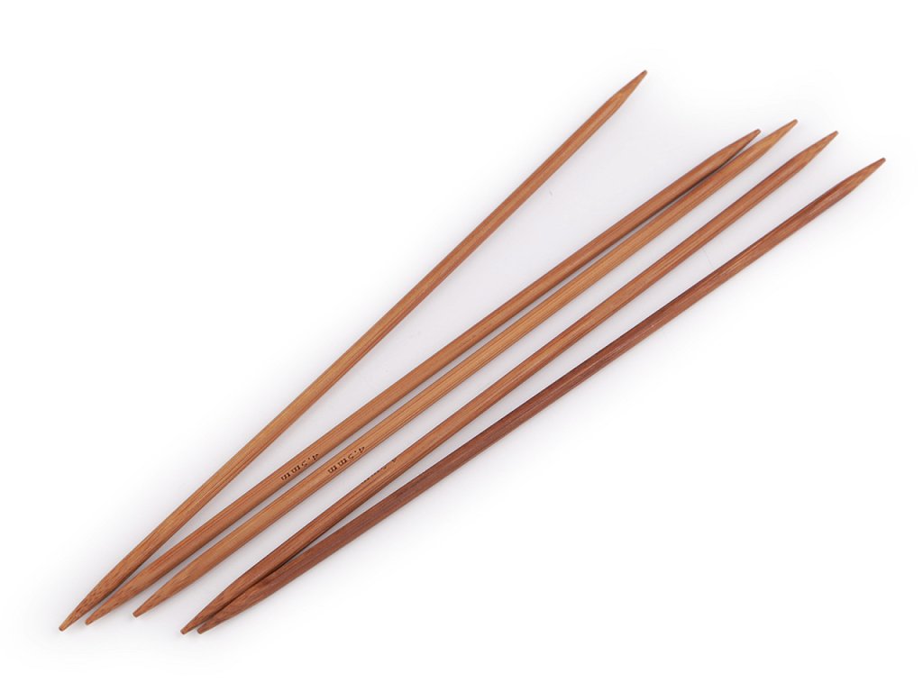 Ponožkové pletací jehlice jsou z přírodního bambusu a mají nízkou hmotnost. Jedna sada obsahuje 5 ks jehlic.- Průměr: 2; 2,5; 3; 3,5; 4,5 mm