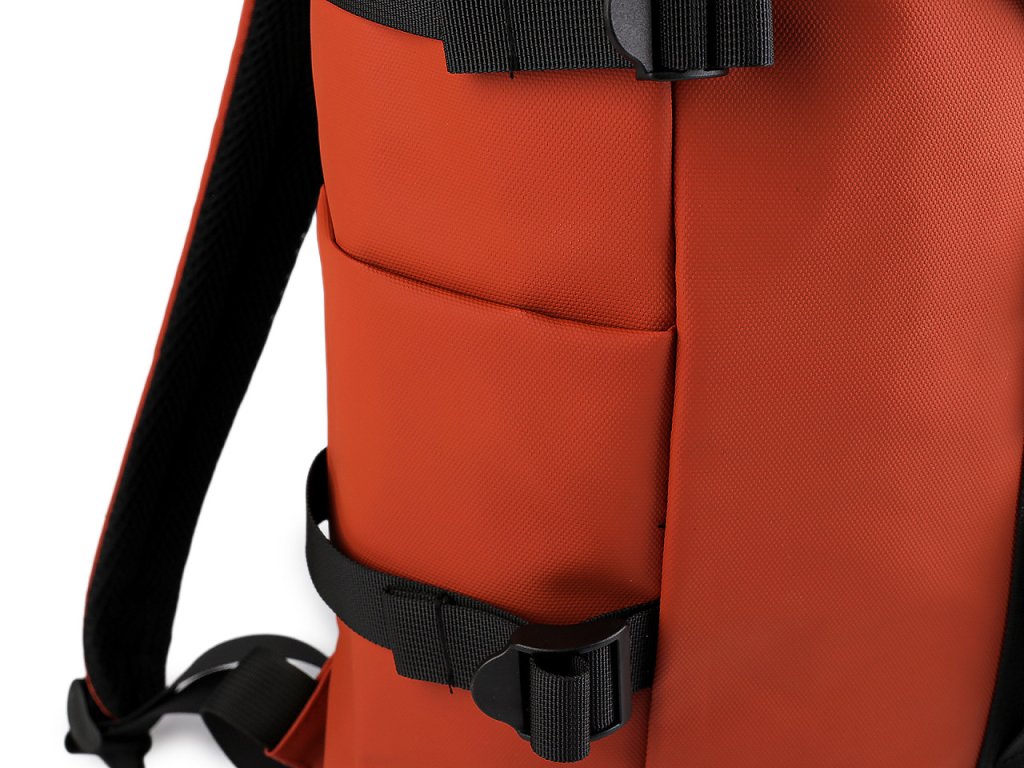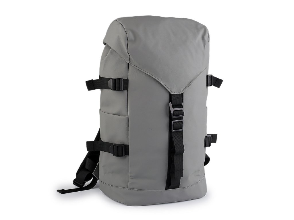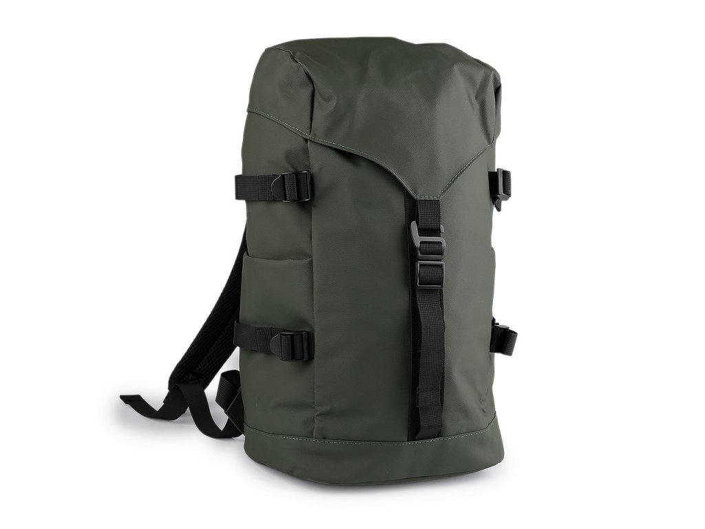 Velký textilní batoh se hodí především na výlety, do posilovny nebo do školy. Má pogumovaný, nepromokavý povrch, který zaručuje snadnou údržbu. Uzavírá se na klopu s poutkem a kovovým háčkem s plynulou regulací délky. Pod klopou najdete zdrhovadlo se šňůrkou a posuvnou brzdičkou. Uvnitř má batoh polstrovanou kapsu. Po stranách batohu jsou kapsy na láhve a různá poutka na upevnění dalších předmětů. Nahoře má batoh praktické poutko na pověšení, polstrované nastavitelné popruhy s plynulou regulací délky a polstrovaná záda.- Rozměry (ŠxVxH): 40 x 50 x 14 cm