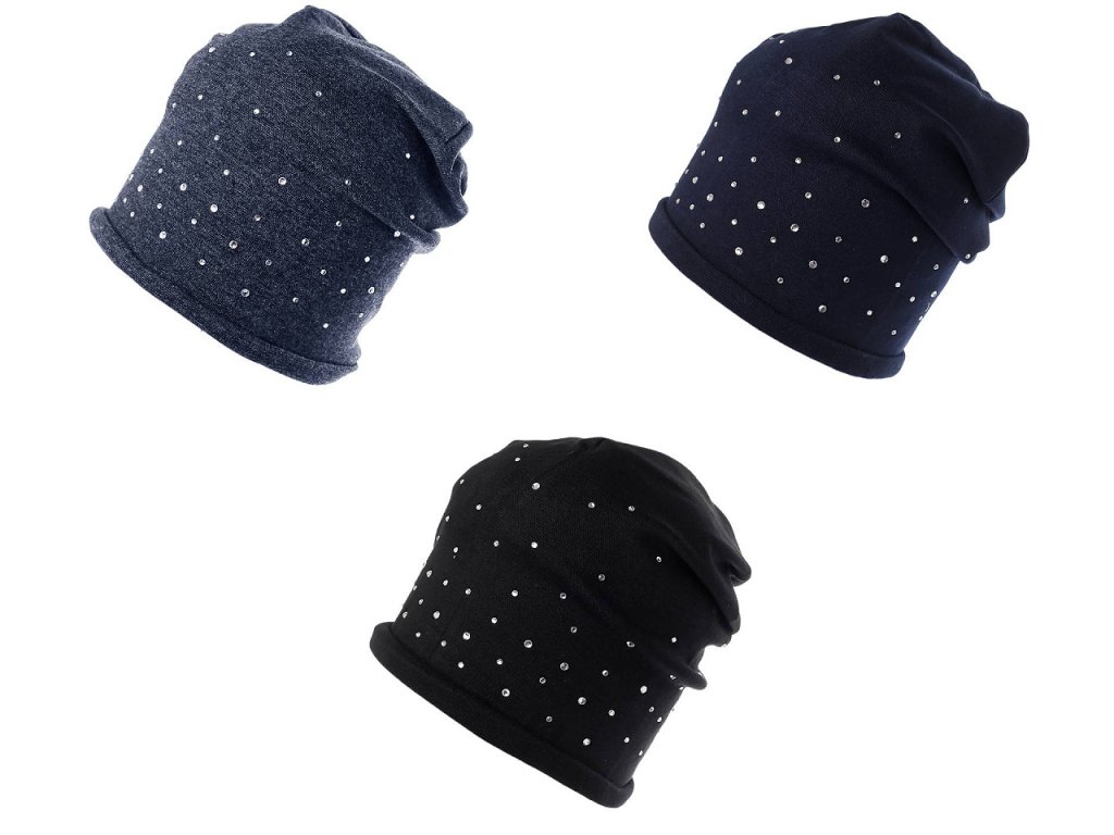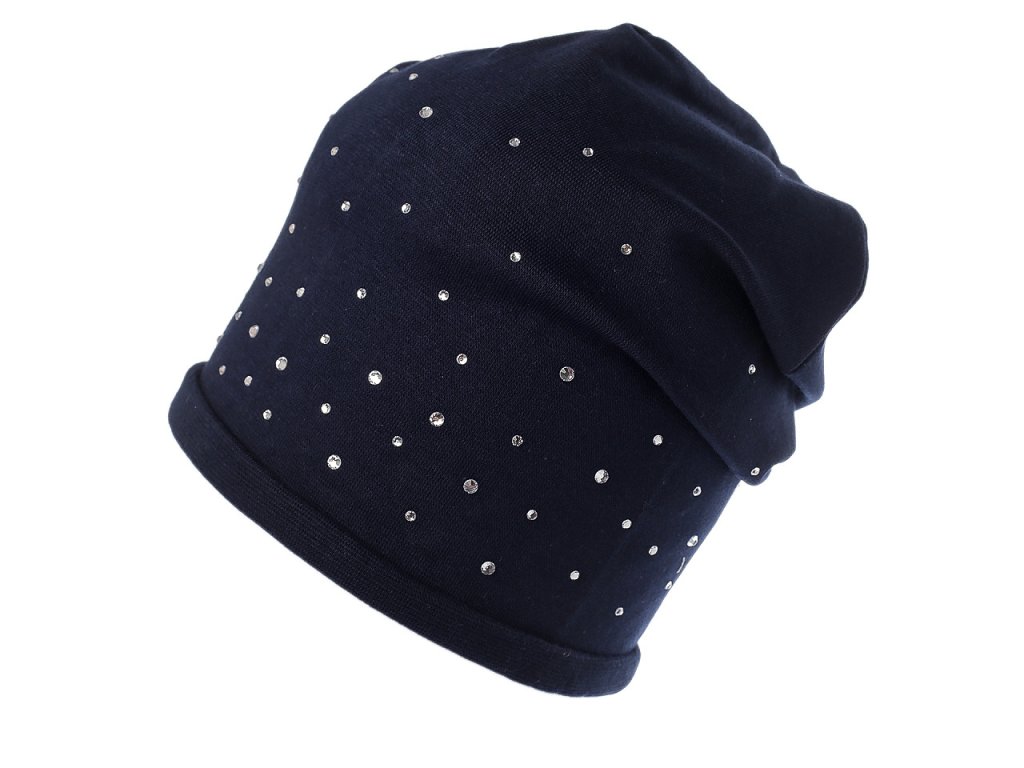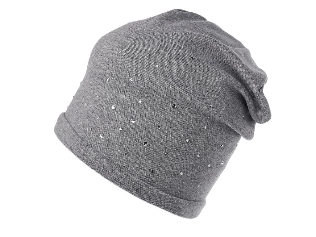 Bavlněná čepice z pružného úpletu je ideální do města, hodí se i na procházky a sportovní aktivity. Na přední straně je ozdobená broušenými kamínky, díky kterým se poutavě třpytí. Má mladistvý ležérní střih se spuštěným zadním koncem.. Snadno se kombinuje s různými outfity, hodí se do chladného podzimního počasí. Volně položený obvod lemu čepice je 46 cm, natažený až 64 cm. Výška čepice je 25 cm.- Výška: 25 cm
