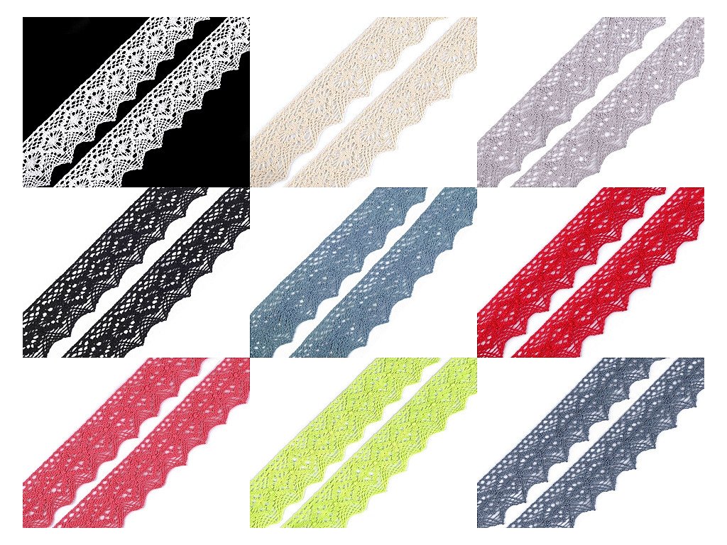 Paličkovaná krajka se zajímavým vzorem je vyrobená z bavlny. Doporučujeme ji žehlit přes tkaninu. Použití: S krajkou ozdobíte dečky nebo ubrusy. Je vhodná také k našití na polštáře či oblečení (halenky, šaty, sukně, aj.). Krajka může mít v návinu 1 prostřih. Šíře krajky se po konečné úpravě může lišit o ±6%.- Šíře: 46; 56 mm