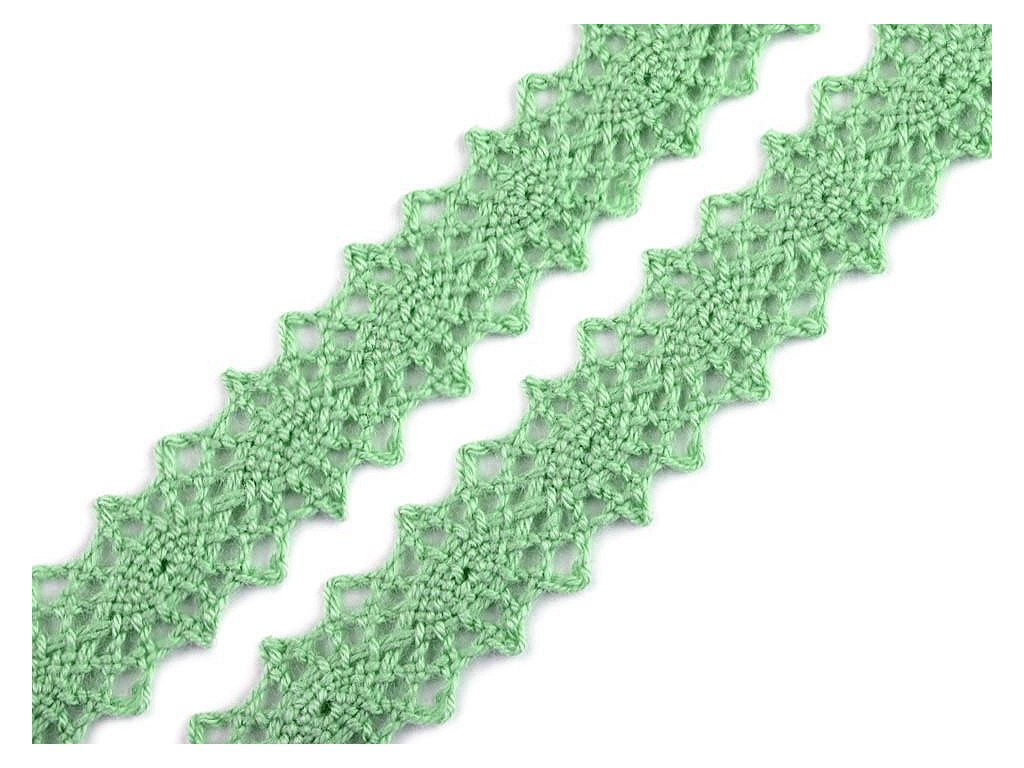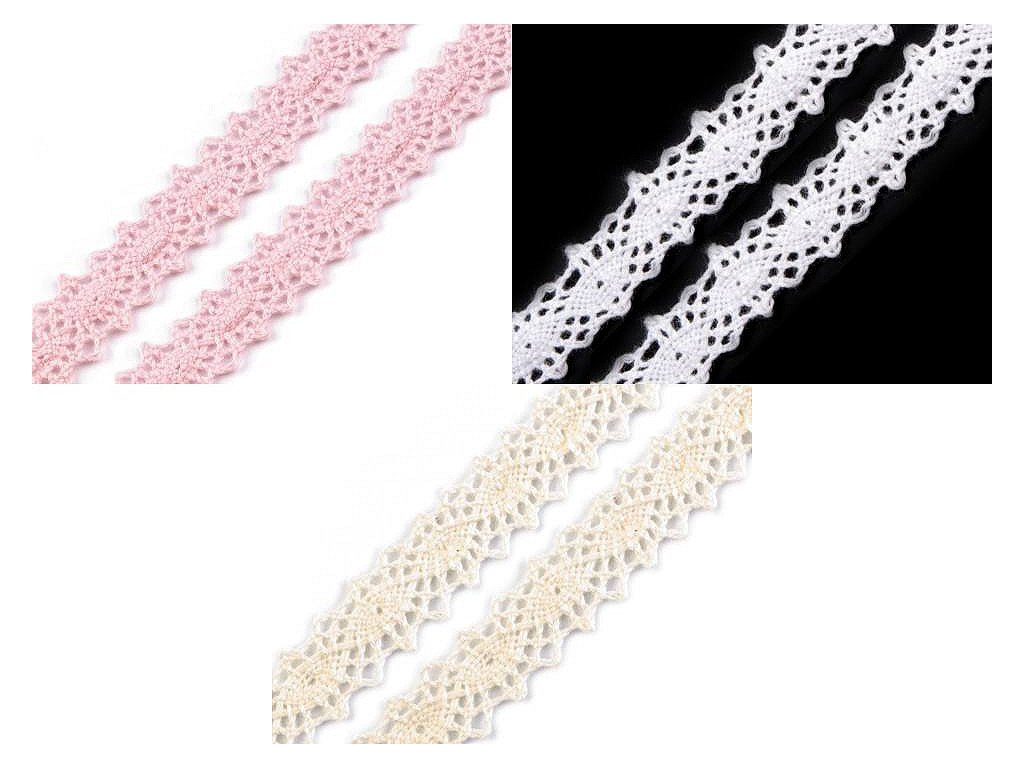 Paličkovaná krajka se zajímavým vzorem je vyrobena z bavlny. Doporučujeme ji žehlit přes tkaninu. Použití: Krajku můžete použít jako lem ubrusů, deček, šatů či halenek. Je vhodná také na scrapbooking. Krajka může mít v návinu 2 až 4 prostřihy. Šíře krajky se po konečné úpravě může lišit o ±6%.- Šíře: 12 mm