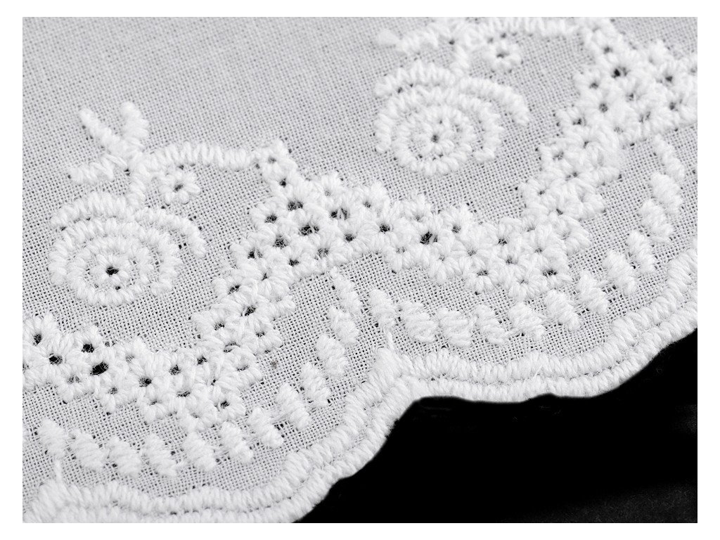 Kvalitní bavlněná madeira je v dolní části ozdobená vyšívaným vzorem s růžemi. Použití: Madeiru využijete na ozdobení dětských zavinovaček, polštářů a ubrusů. Můžete ji našít také na halenky či sukně. Šíře nevyšité části se může mírně lišit (±10%).- Šíře: 11 cm