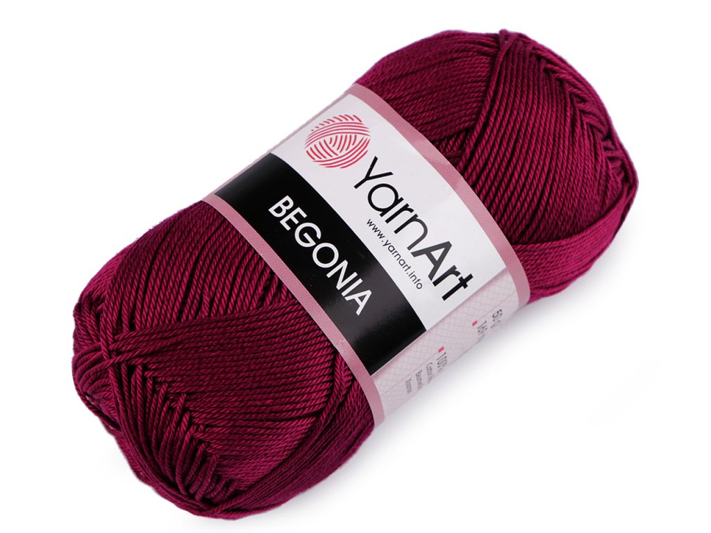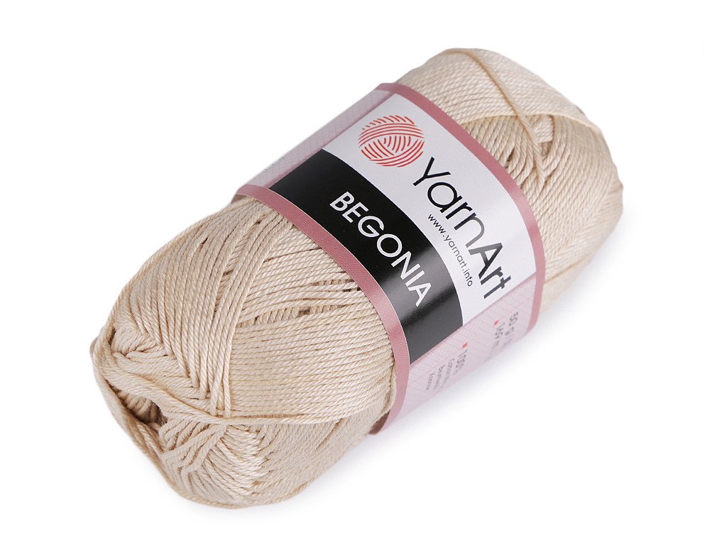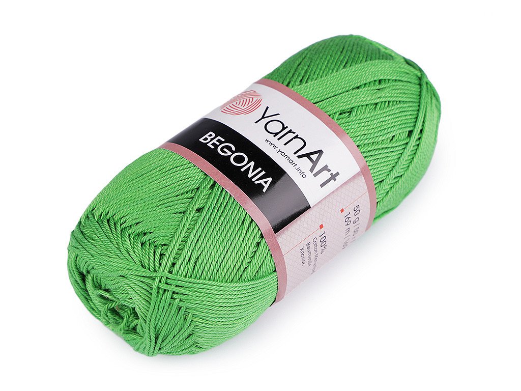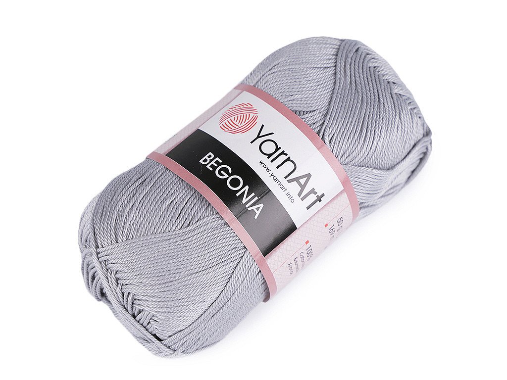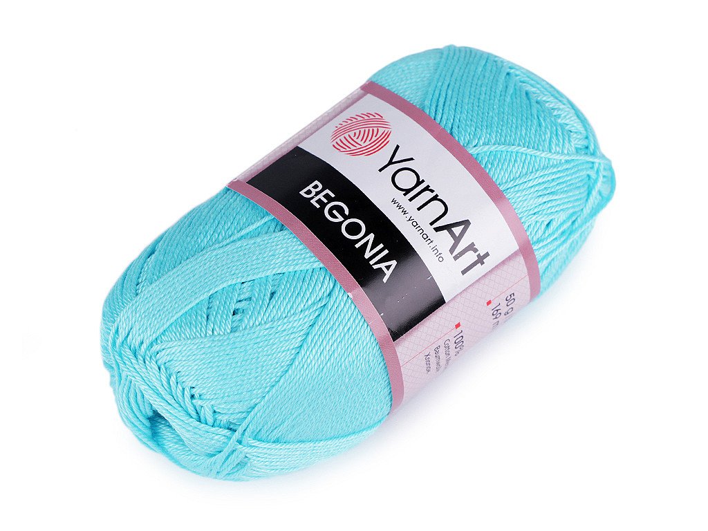 Pletací příze Begonia je vyrobená z mercerované bavlny. Mezi její výhody patří, že je na dotek jemnější, lesklejší a stálobarevná. Využijete ji na pletení či háčkování dekorací, hraček, zvířátek, ponožek, svetříků, dětských doplňků i oděvů apod. Velikost jehlic: 3 Velikost háčku: 3,5 Tloušťka příze je 1 mm.- Hmotnost: 50 g