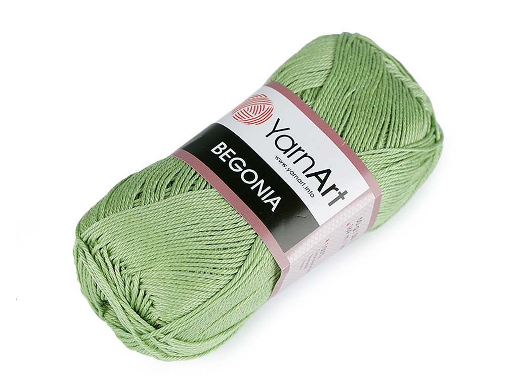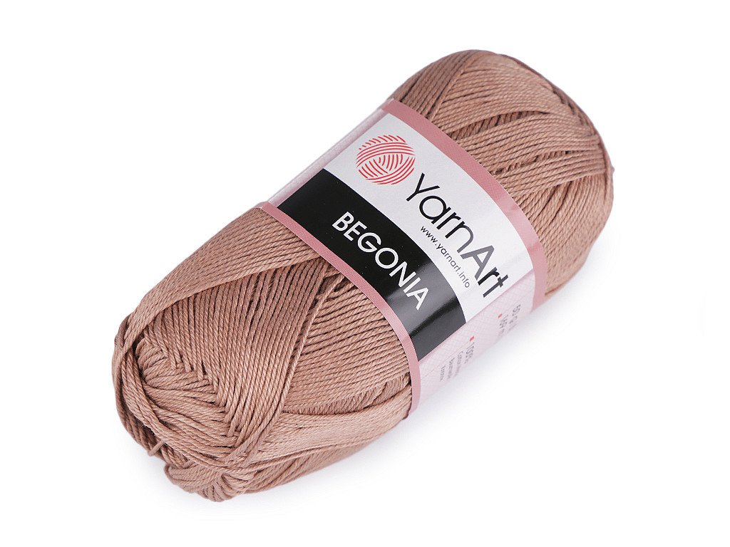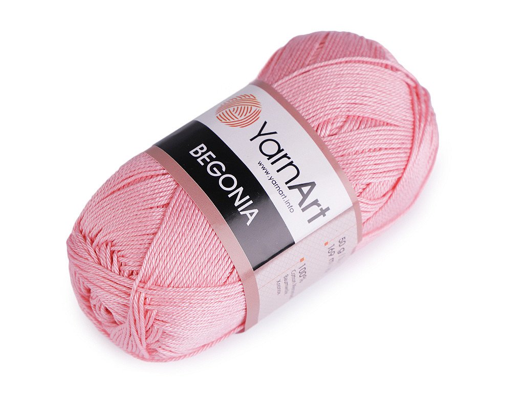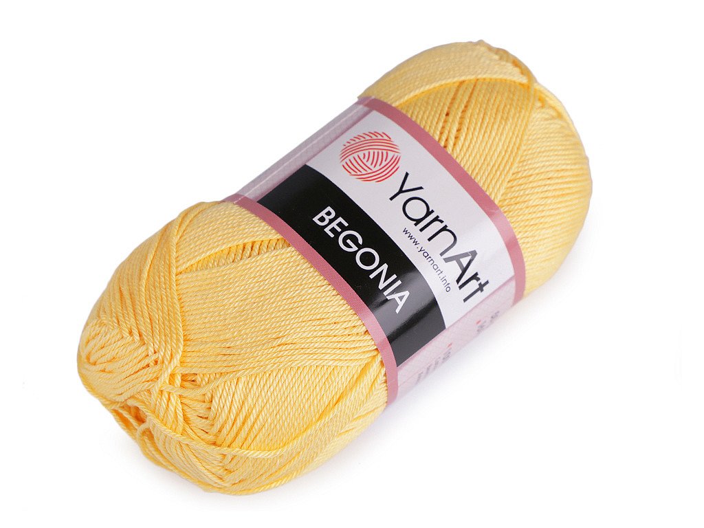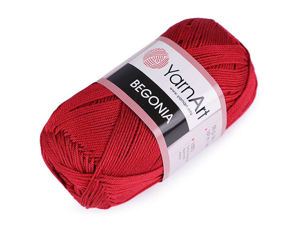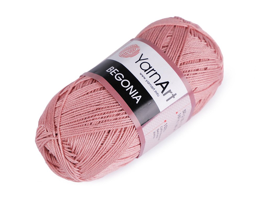 Pletací příze Begonia je vyrobená z mercerované bavlny. Mezi její výhody patří, že je na dotek jemnější, lesklejší a stálobarevná. Využijete ji na pletení či háčkování dekorací, hraček, zvířátek, ponožek, svetříků, dětských doplňků i oděvů apod. Velikost jehlic: 3 Velikost háčku: 3,5 Tloušťka příze je 1 mm.- Hmotnost: 50 g