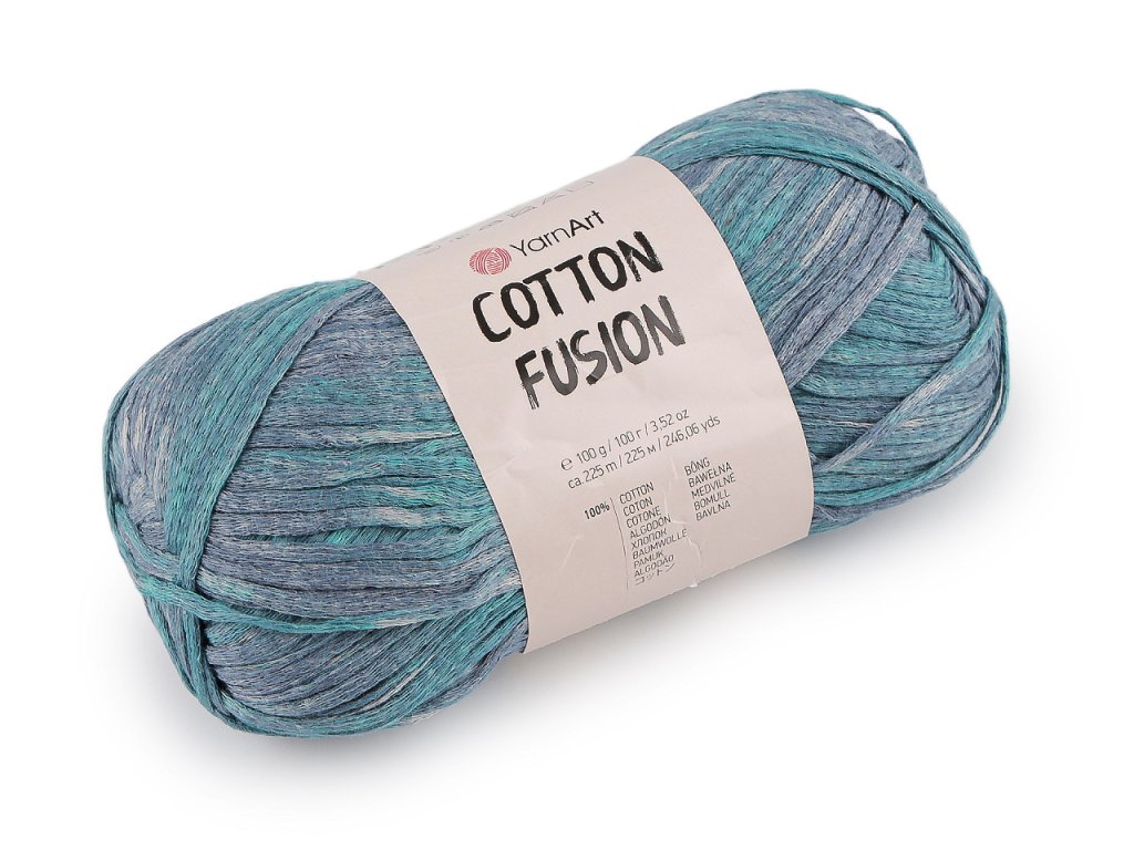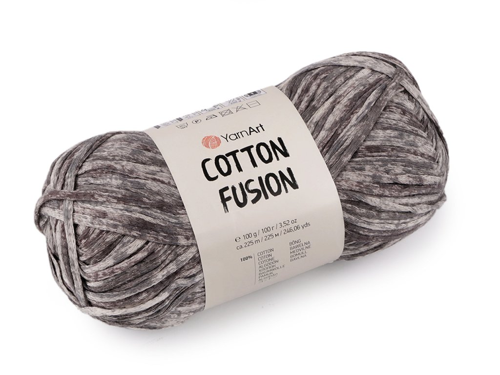 Z pletací příze Cotton Fusion uháčkujete či upletete oděvy příjemné na tělo zvláště v letních měsících. Je vhodná na svetříky, topy, halenky apod. Hotové výrobky jsou lehké, dobře drží tvar a jsou odolné proti opotřebení. Melírované zabarvení dodává výrobkům šmrnc a neotřelý vzhled. Velikost jehlic: 3 Velikost háčku: 3- Hmotnost: 100 g
