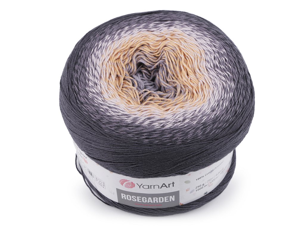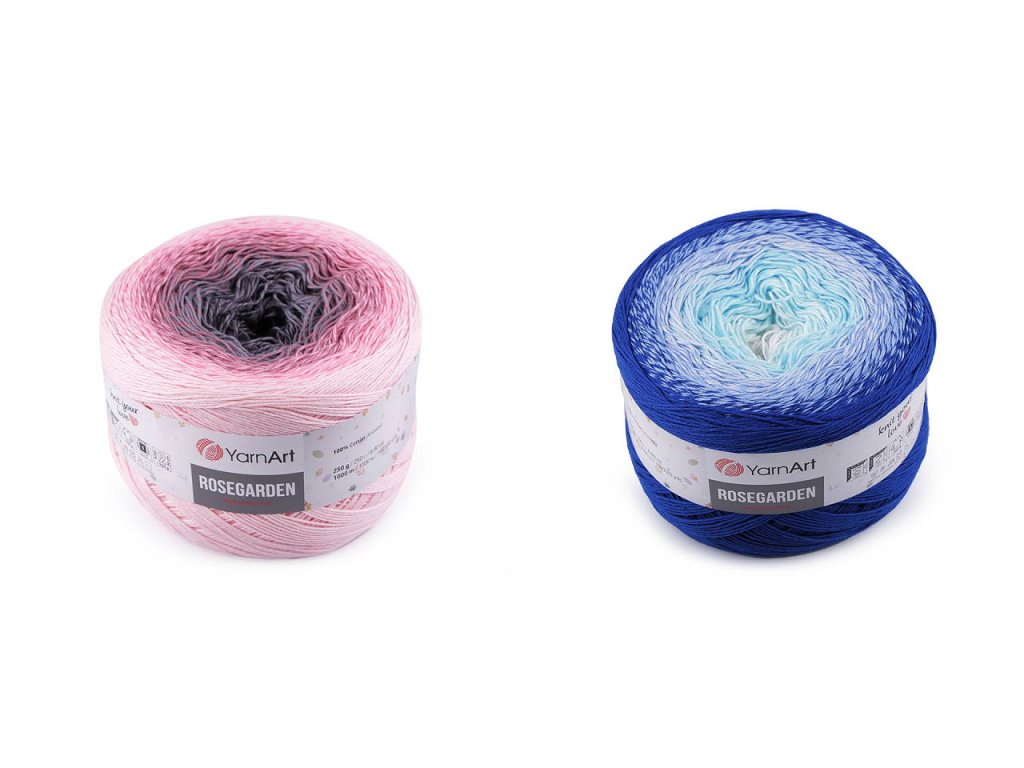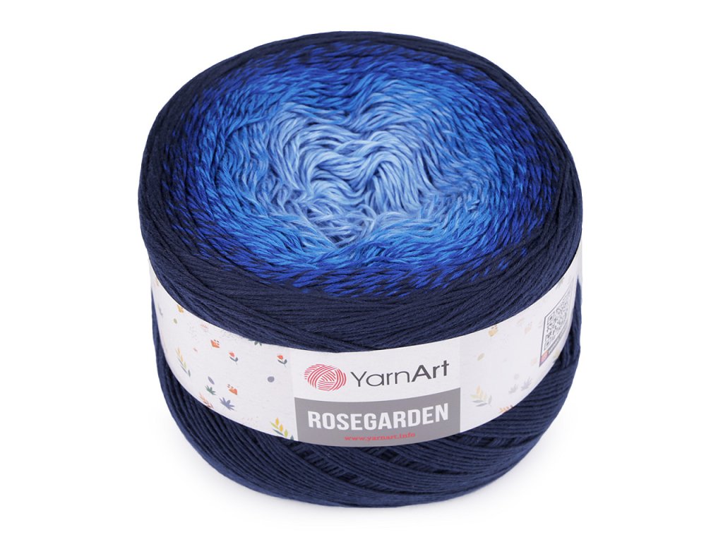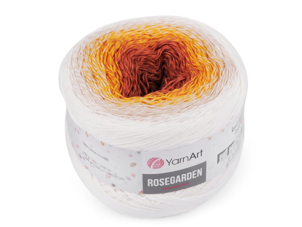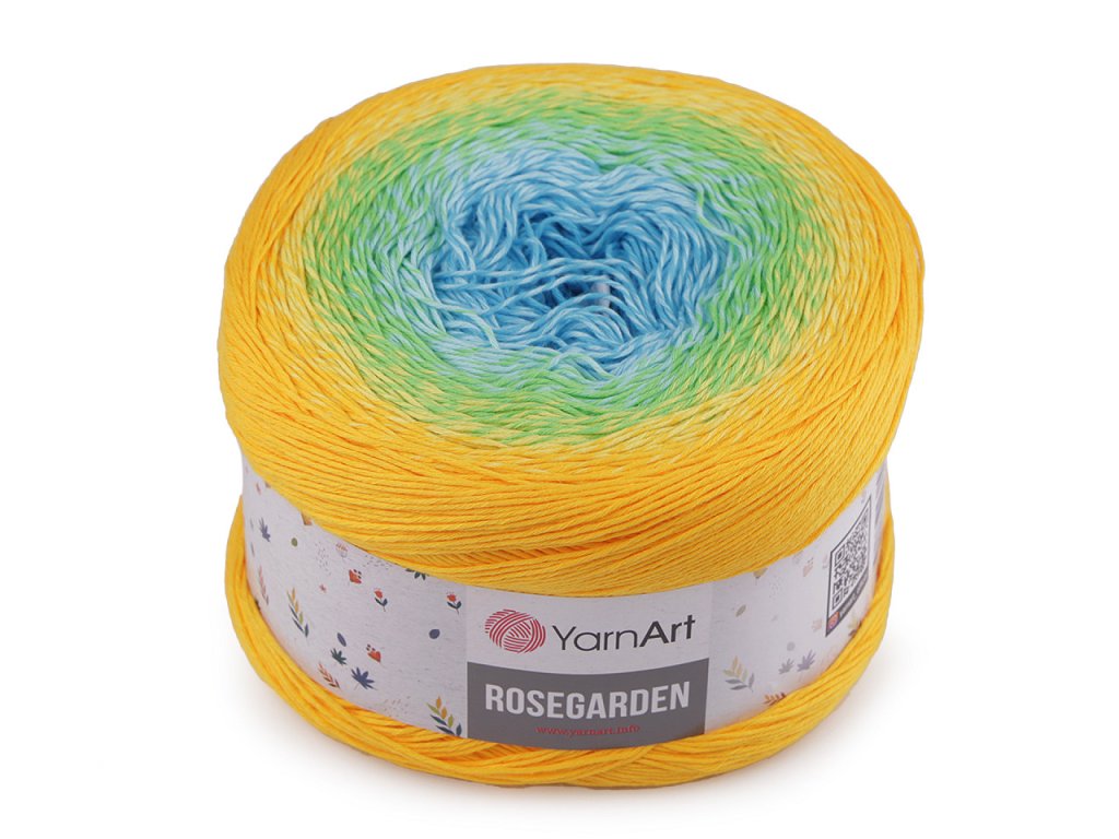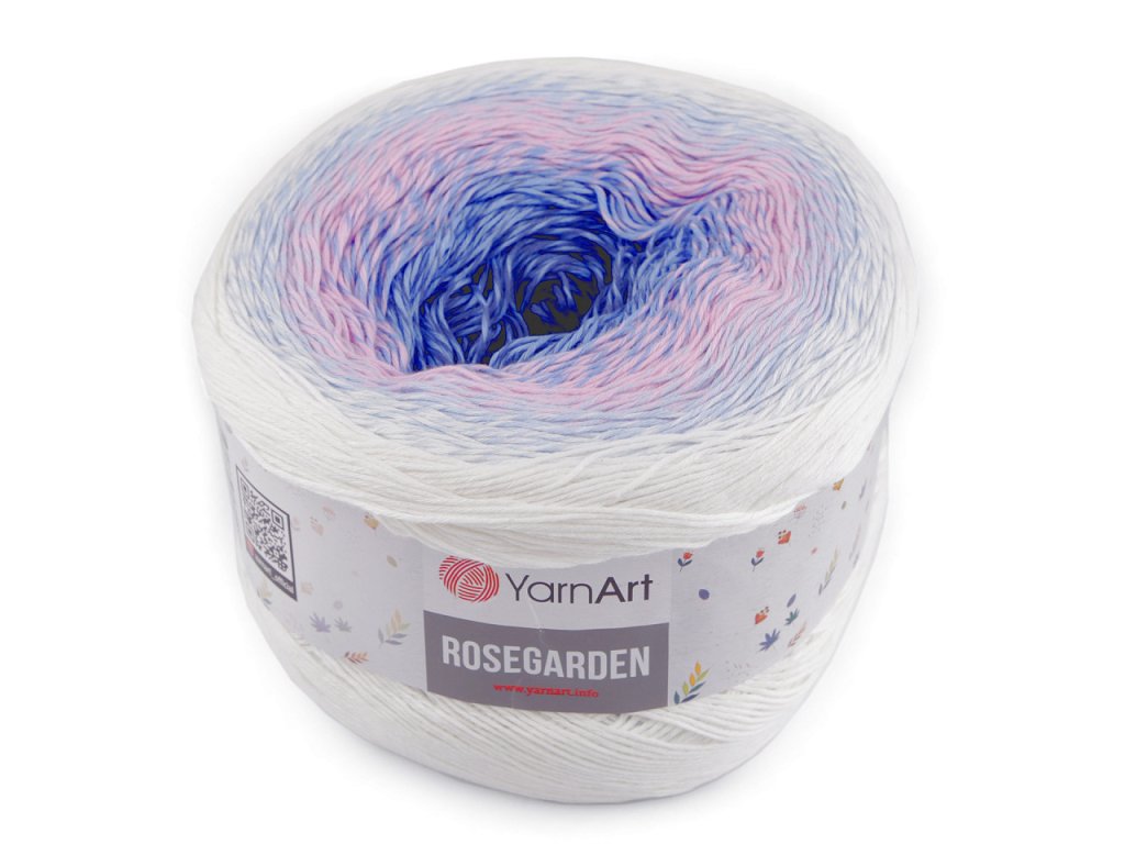 Bavlněná pletací příze Rosegarden je zajímavá svými barevnými přechody, se kterými budou všechny výrobky vypadat originálně. Je vhodná na pletení i háčkování plédů, svetrů, ponč, šálů apod. Velikost jehlic: 2,5 Velikost háčku: 3- Hmotnost: 250 g
