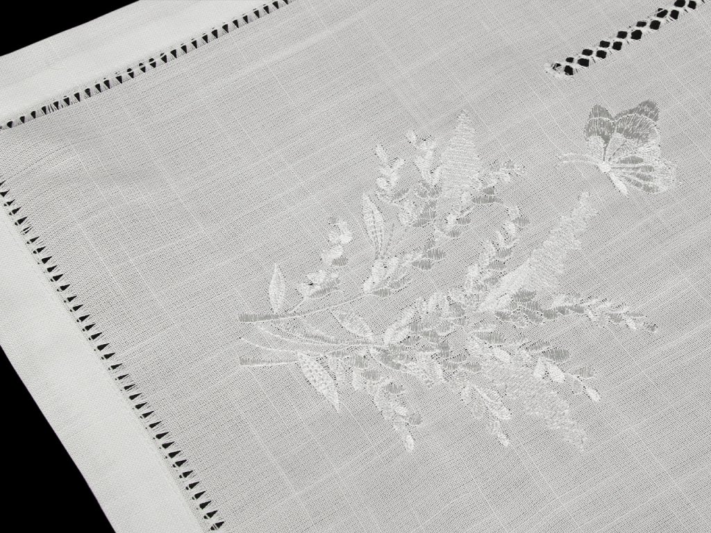 Textilní ažurový běhoun se strojovou výšivkou květů elegantně doladí vaši domácnost. Poslouží k ozdobení středové části stolu. Využijete ho nejen doma, ale i na svatbách a různých oslavách, kterým dodá romantickou atmosféru. Je jednostranný, s tuhými okraji. Prostírání do sady najdete pod kódem 620060.- Šíře: 40 cm