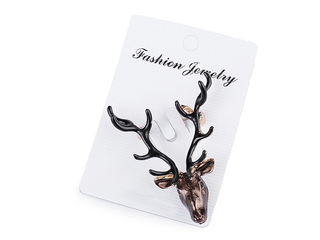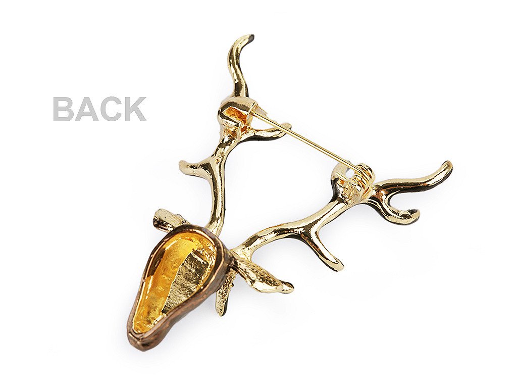 Unisex brož s jelení hlavou s velkými parohy nadchne jak dámy, tak i každého myslivce. Bude vypadat skvěle na klopě pánského saka i na dámském kabátě či svetru. Brož má vzadu brožový špendlík. Je na plastové kartě, která se dá zavěsit na prodejní stojany.- Rozměry: 4 x 5,5 cm