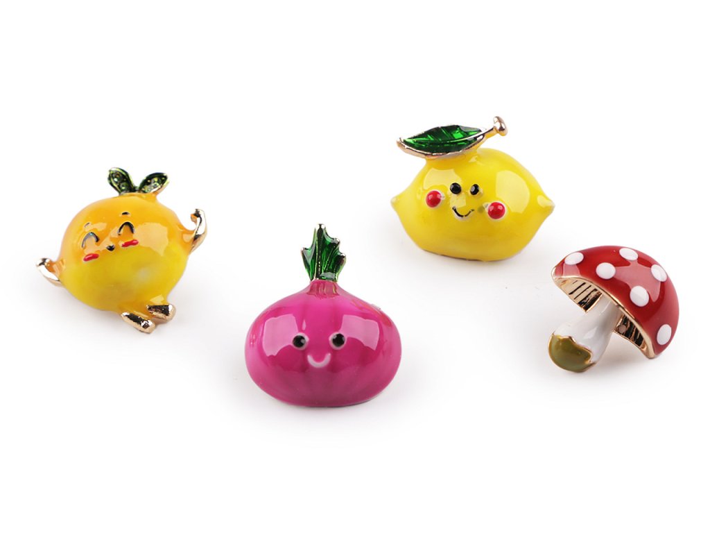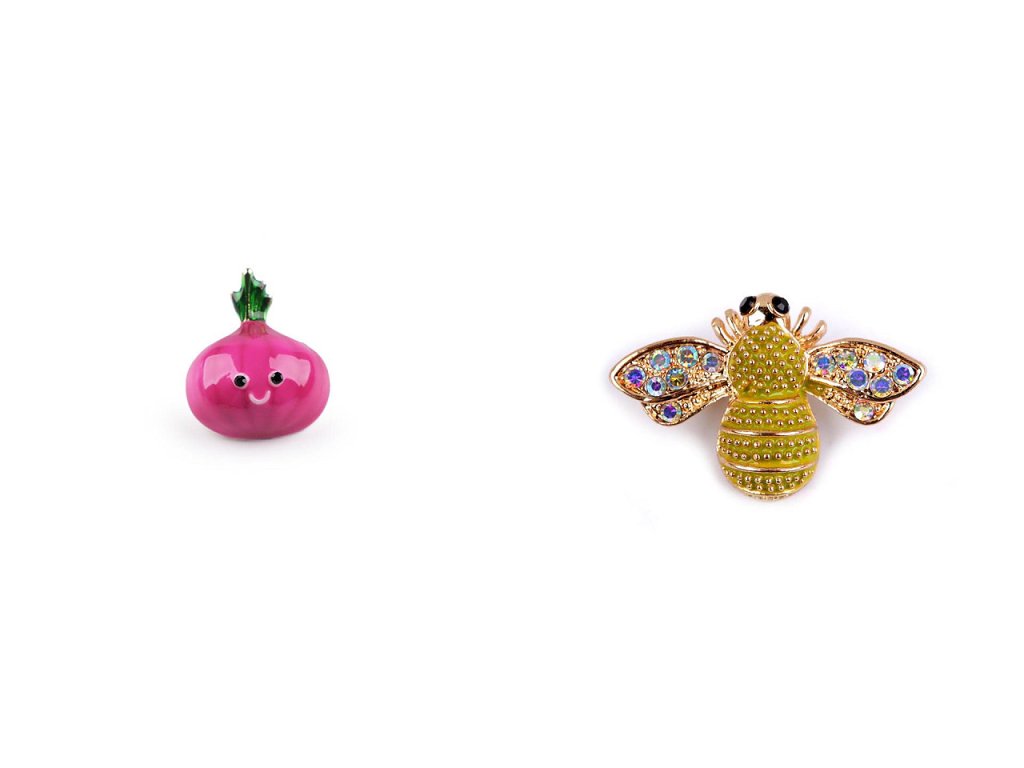 Malá brož / odznak s veselým designem oživí jakýkoliv outfit i doplněk. Oblíbená je na obzvláště na taškách, brašnách a batozích. Zapíná se na malý spínací špendlík. Varianta č. 4 má jednoduché jednobodové zapínání. Varianta č. 5 je ozdobená broušenými kamínky.- Průměr: č. 1: 2,2 cm