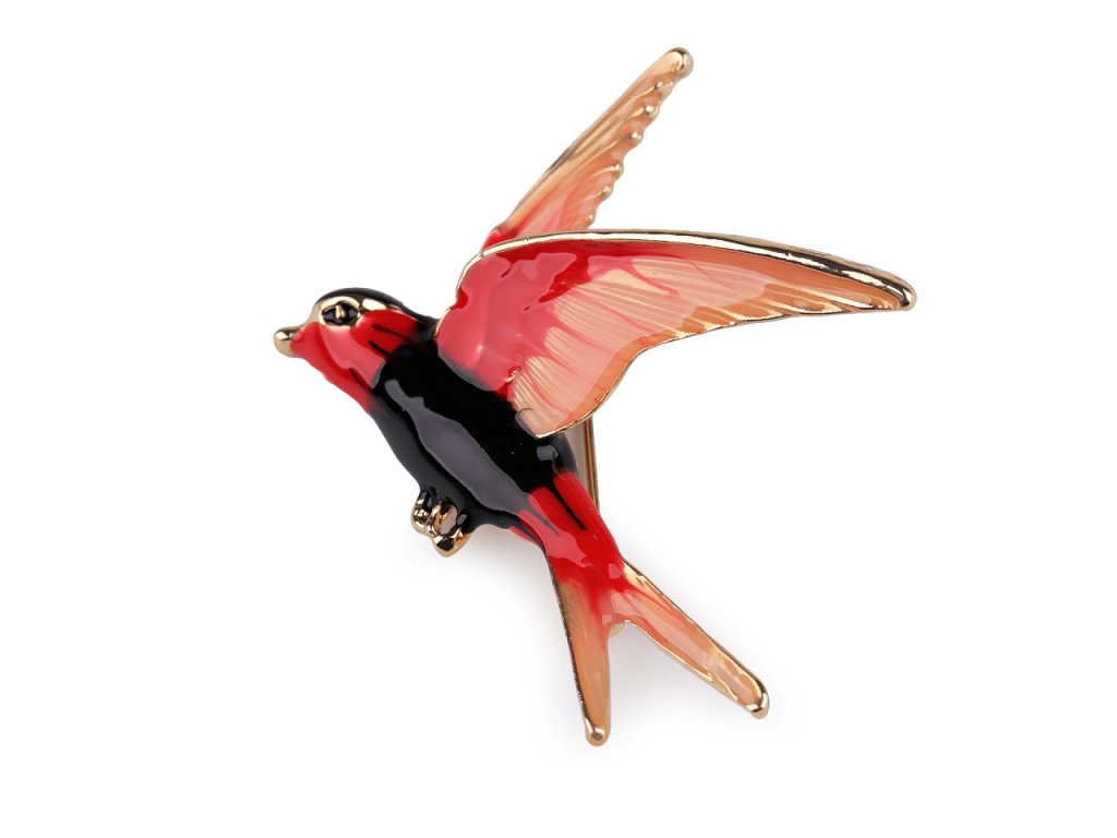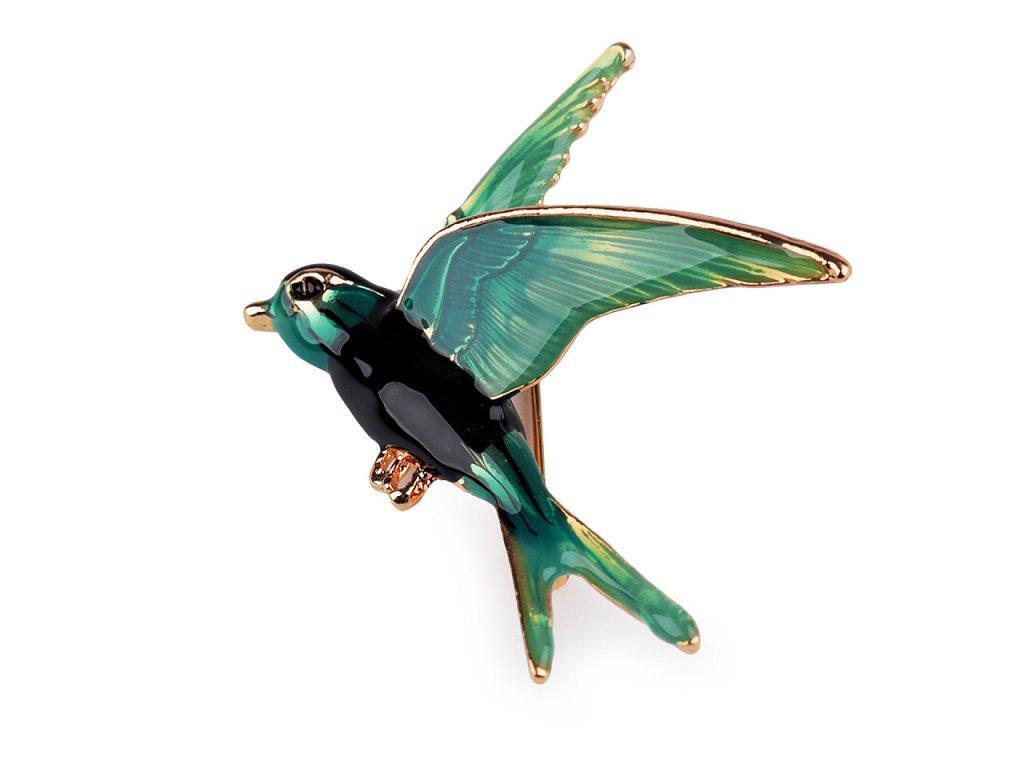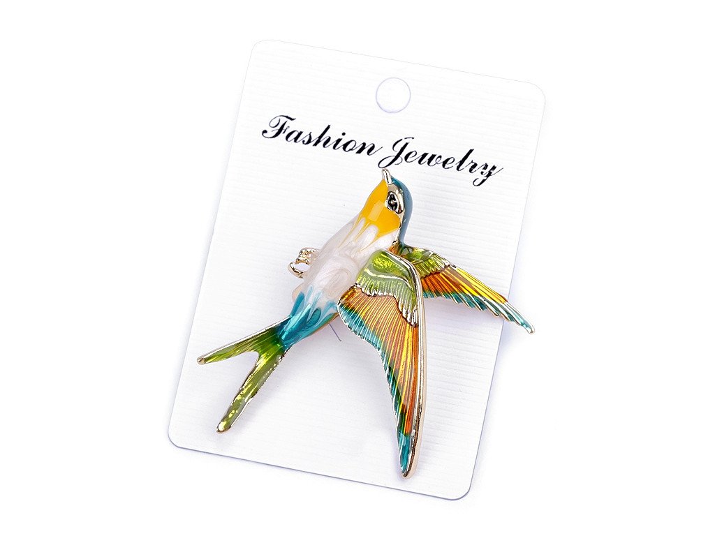 Brož ptáček s barevným smaltem vás uchvátí svou duhovou hrou barev. Je velice elegantní, můžete ji využít na běžné nošení i na společenské události - návštěvy divadel, oslavy apod. Z rubu má brož zavírací špendlík. Můžete ji nosit nejen na oděvech, hodí se i k ozdobení klobouků, tašky či sepnutí šátku. Brož je na plastové kartě, kterou lze zavěsit na prodejní stojany.- Rozměry: 5,2 x 5,5 cm