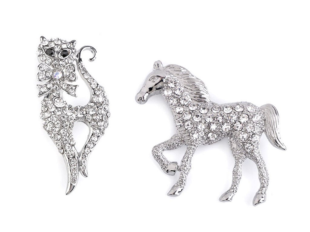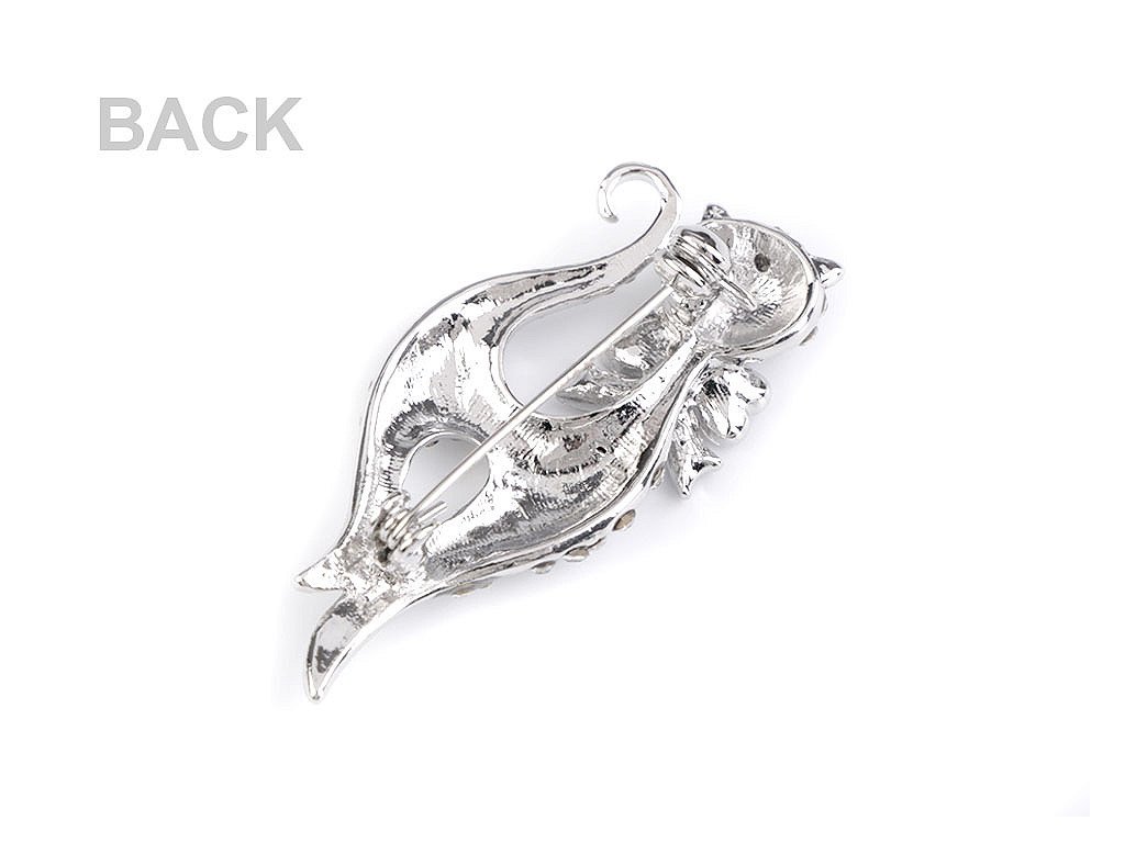 Elegantní brož s broušenými kamínky působí velice přepychově. Potěší mladší slečny i zralé ženy. Kvalitní kovový základ je osázený drobnými broušenými kamínky, které se krásně třpytí. Zapíná se pomocí spínacího špendlíku, který má pojistku proti nechtěnému otevření. Brož můžete nosit nejen na oděvech, ale hodí se i k ozdobení klobouků, tašky či sepnutí šátku.- Rozměry: č. 1: 2 x 4,7 cm