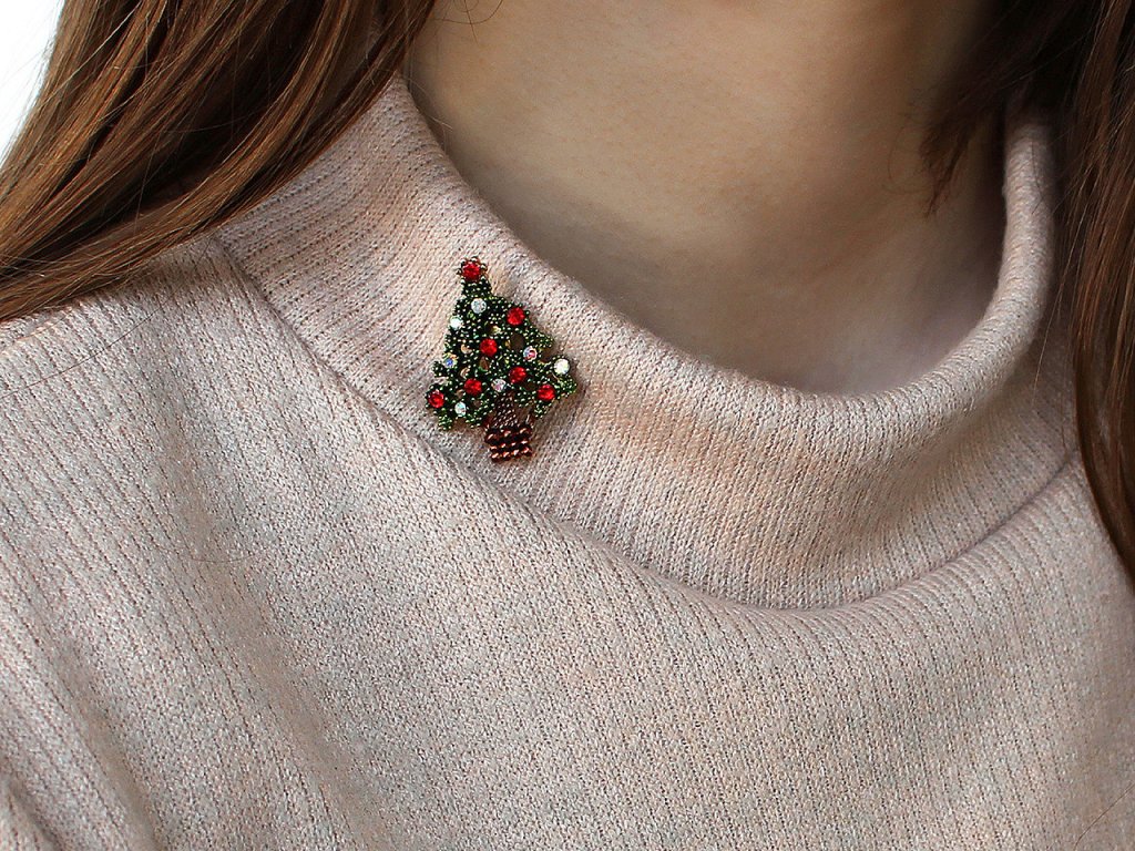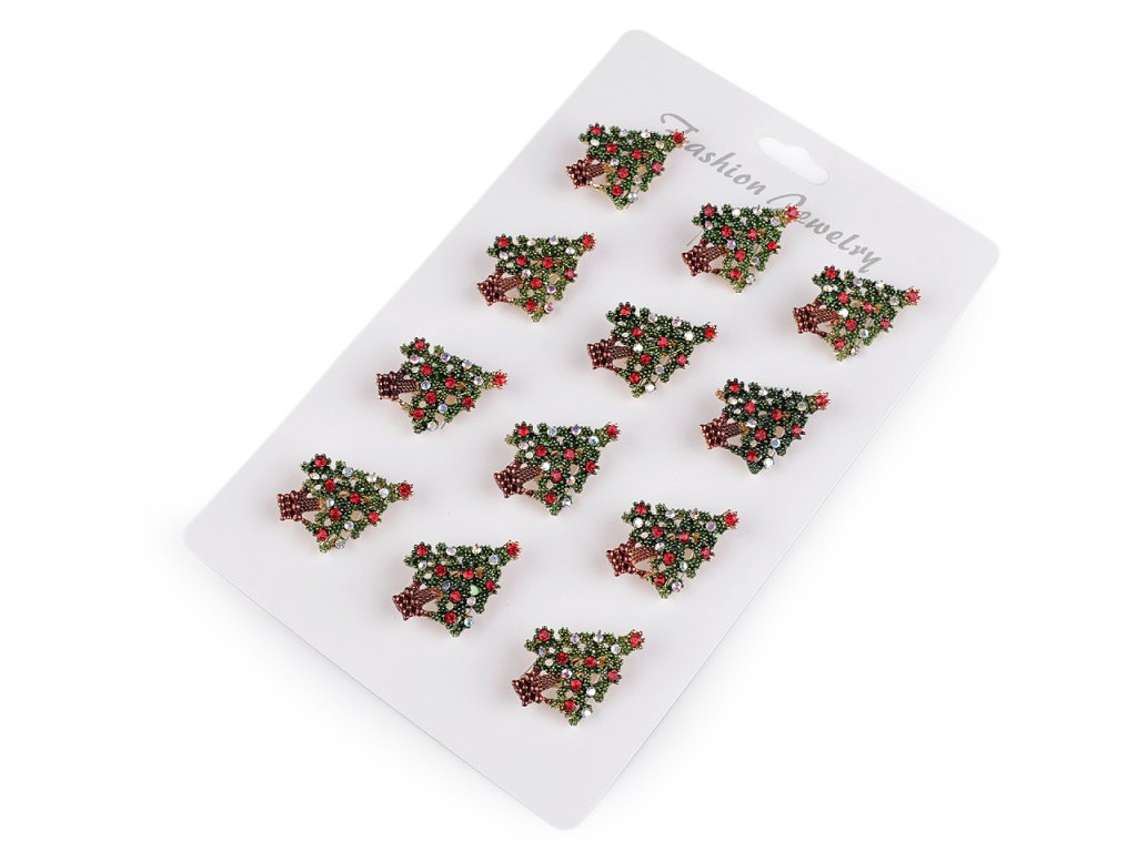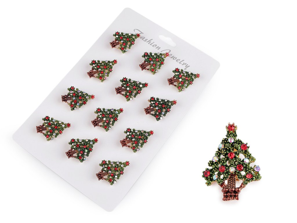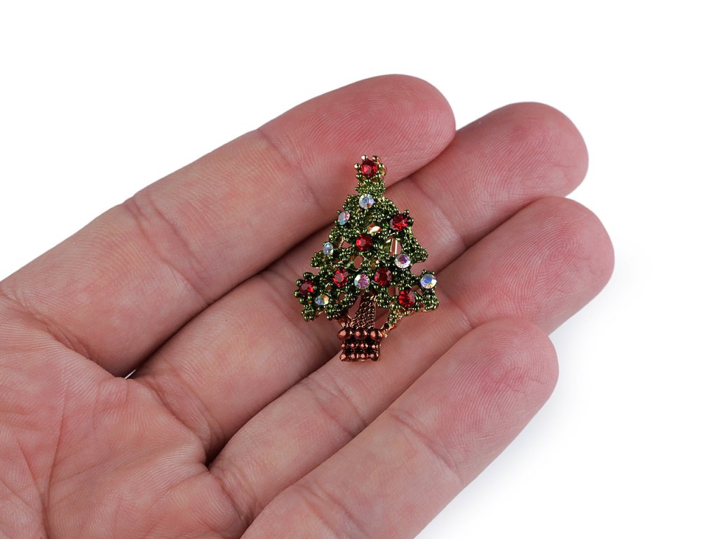 Brož s broušenými kamínky ve tvaru vánočního stromečku je elegantním a zářivým doplňkem, který dokonale podtrhne vaši slavnostní náladu. Tento okouzlující doplněk můžete využít na společenské události - vánoční oslavy, večírky apod. Vynikne na saku, kabátě, košili či halence, dá se připnout na klobouk, tašku, můžete si ozdobně sepnout šátek. Na zadní straně má brožový špendlík.- Rozměry: 2,5 x 3,1 cm