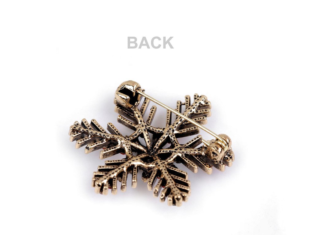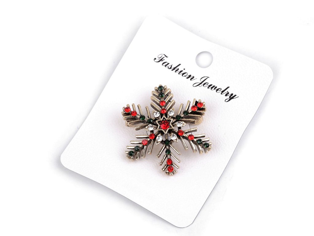 Elegantní brož s vločkou je osázená barevnými broušenými kamínky. Na zadní straně má brožový špendlík. Můžete ji nosit na oděvech, čepicích, kloboucích, taškách či s ní můžete sepnout šátek. Brož je na kartě, kterou lze zavěsit na prodejní stojany.- Průměr: č. 1: 3,6 cm
