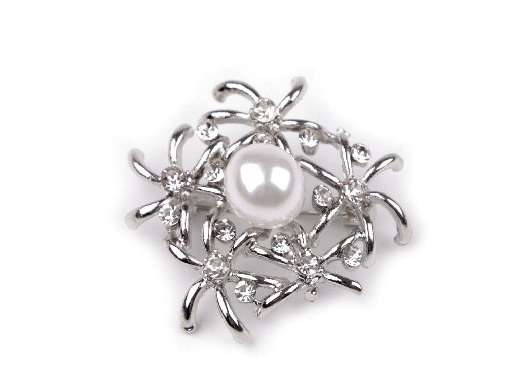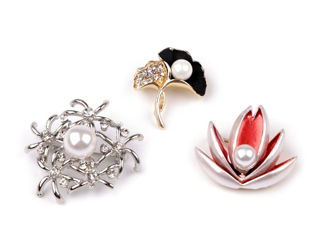 Brož s motivem květů rostlin bude dokonalým doplňkem vašeho oděvu. Díky perly elegantně dozdobí halenky, šaty, saka, svetry, kabáty, kabelky či čepice. Hodí se i na ozdobné sepnutí šátku. Brož má vzadu brožový špendlík. Je na plastové kartě, která se dá zavěsit na prodejní stojany.- Průměr: č. 1: 4 cm