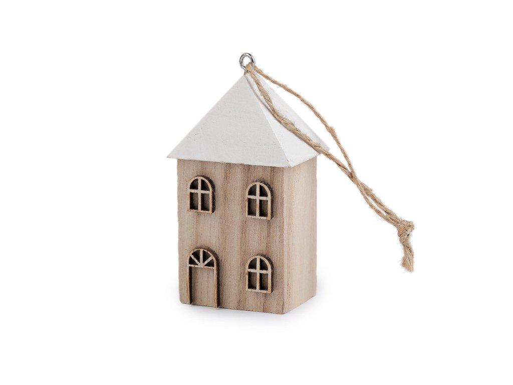 Malý dřevěný domeček můžete díky poutku zavěsit na stromeček, dekorační věnce, větvičky ve váze apod. Je vhodný k celoročnímu aranžování.- Rozměry: 4 x 3 cm