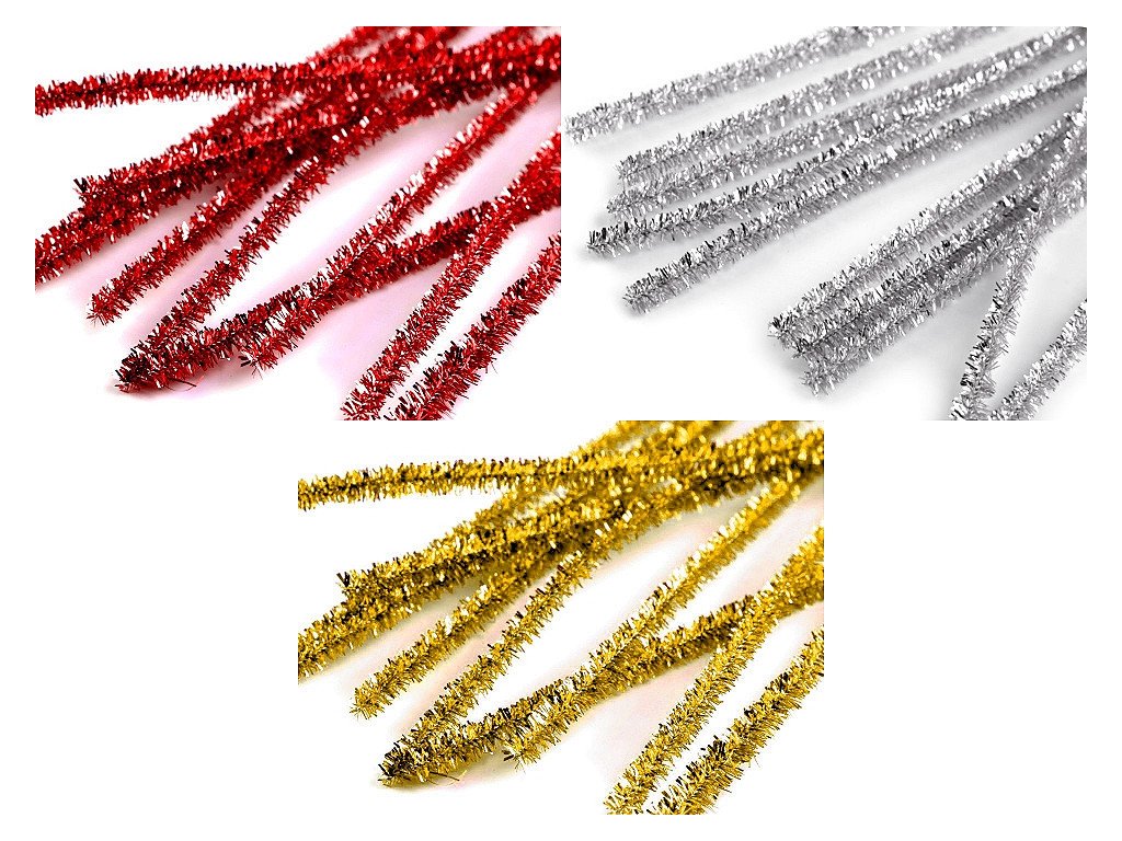 Lurexové drátky, známé také jako žinylkové chlupaté drátky. V sekci Články nyní náleznete návod na vánoční ozdoby, při nichž kombinujeme artyčokový patchwork s těmito lurexovými drátky. V mixu se mohou vyskytovat náhodně vybrané barvy dle aktuálních skladových zásob.- Průměr: 6 mm