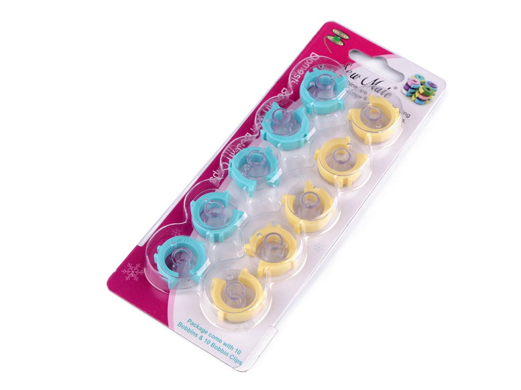 Cívka k šicímu stroji má speciální držák, díky kterému se nitě samovolně neodmotají. Usnadní vám to manipulaci a skladování cívek. Cívky lze použít do šicího stroje Lucznik. Cívky mají průměr 20,4 mm, výšku 11,5 mm a vnitřní průměr 6 mm.- Sada: 10 ks