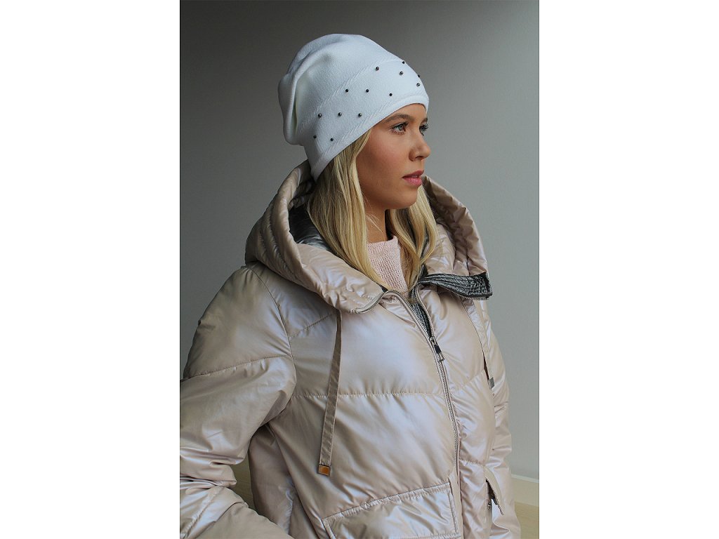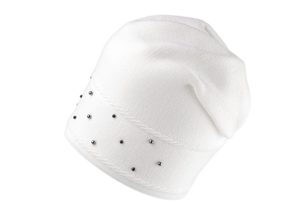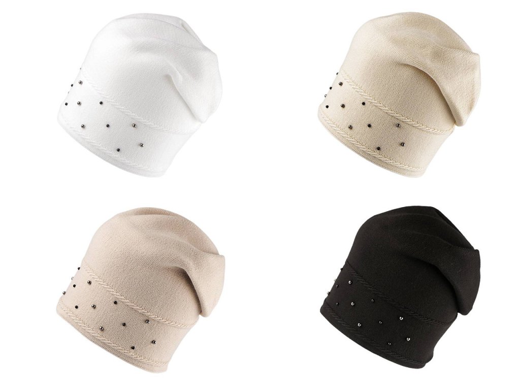 Pletená čepice s perlami ve stylu Homeless má mladistvý ležérní střih se spuštěným zadním koncem. Konec čepice je přešitý, odpadá její složité aranžování na hlavě. Perly v přední části dodávají celkovému vzhledu lesk a styl. Materiálová úprava lamblook dodává čepici příjemnou kašmírovou měkkost a komfort při nošení. Čepice vás bude hřát celou zimu, má lem z dvojité pleteniny, je ideální pro zimní procházky ve městě i pro outdoorové aktivity. Volně položený obvod lemu je 46 cm, natažený až 60 cm. Výška čepice je 22,5 cm.- Výška: 22,5 cm