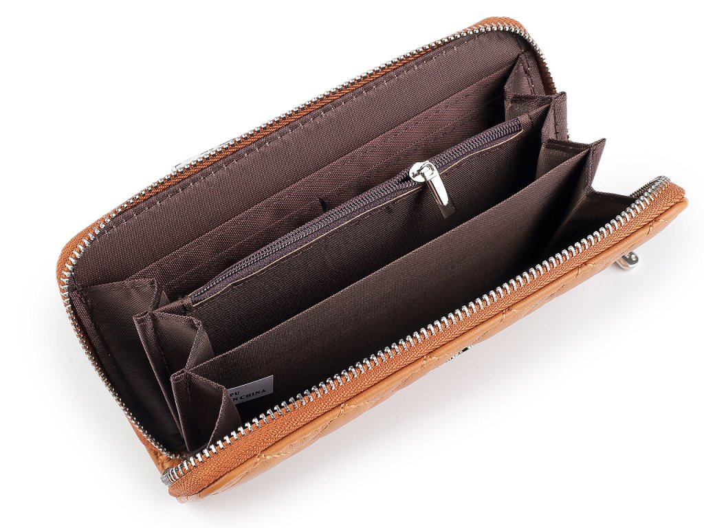 Stylová dámská peněženka vyniká kvalitním zpracováním. Je ozdobená prošíváním. Díky syntetického materiálu, který vypadá jako kůže, se stane vaší oblíbenou společnicí. Zapíná se na zip. Uvnitř se nachází tři přihrádky na bankovky a jedna kapsa s otvíráním na zip, sloužící k uschování mincí. Na vnitřních stranách peněženky pak najdete přihrádky k uložení karet či dokladů.- Rozměry: 10 x 19 x 2,5 cm