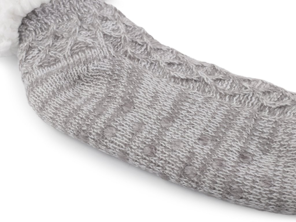 Kratší teplé ponožky vás skvěle zahřejí. Jsou heboučké, z vrchní strany pletené, uvnitř je teplá chlupatá podšívka, která věrně imituje vlnu. Protiskluzové gumové plošky na chodidle zabrání uklouznutí, můžete je používat i jako domácí obuv. Široký měkký lem je příjemný na nošení.- Velikost: 35 - 38