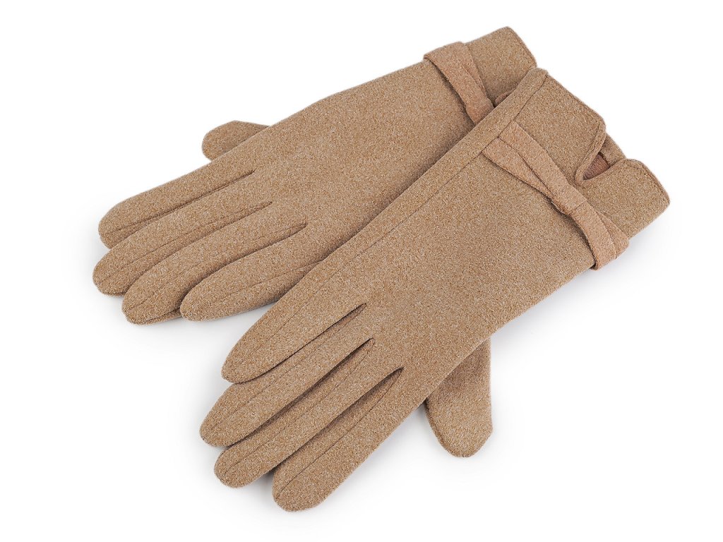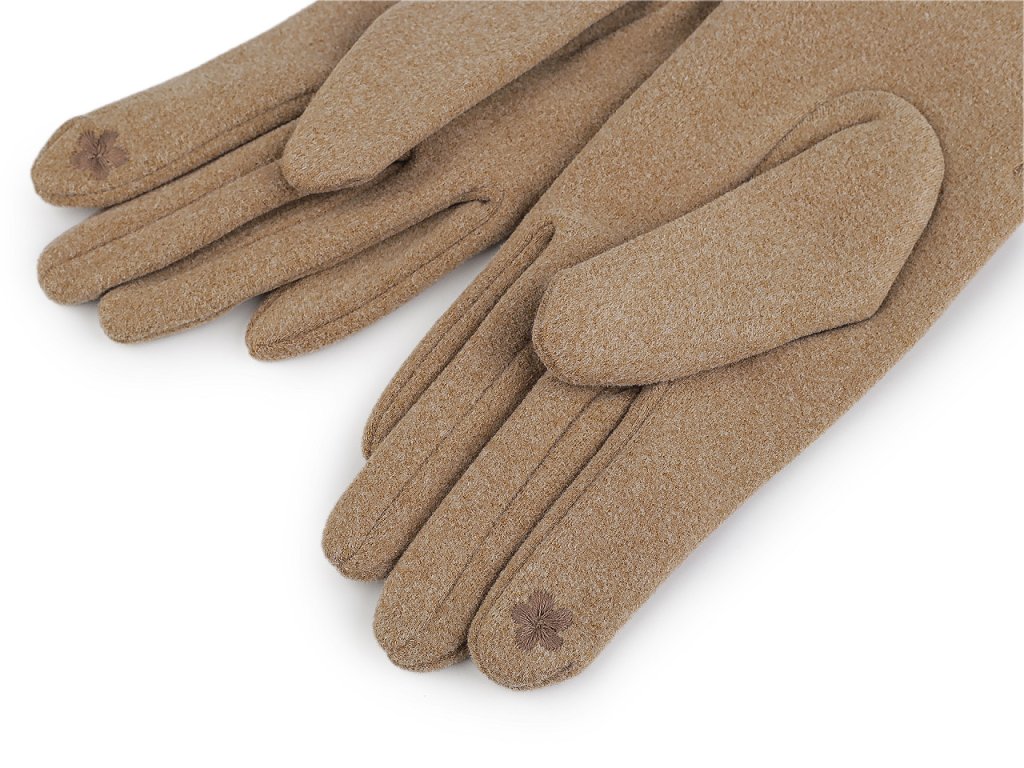 Dámské rukavice s ozdobnou manžetou jsou velice elegantní. Teplý pružný úplet se ruce skvěle přizpůsobí. Uvnitř je jemný plyš, jenž je velice příjemný na dotek. Tento módní doplněk se hodí do zimy nebo do chladnějšího podzimního počasí. Na ukazováčku pravé i levé ruky je vyšitý květ, díky kterému můžete ovládat dotykové přístroje - mobil, tablet, bankomat apod. Šířka je měřená na volně položených rukavicích uprostřed (bez palce).- Šířka: 8,3 cm