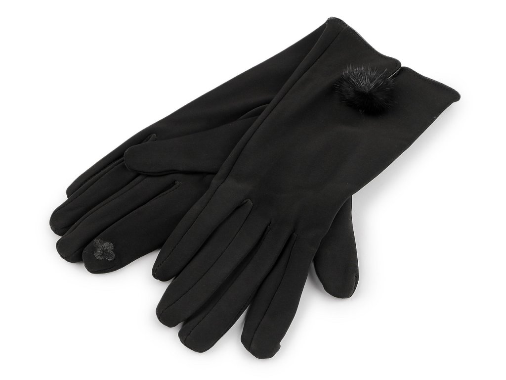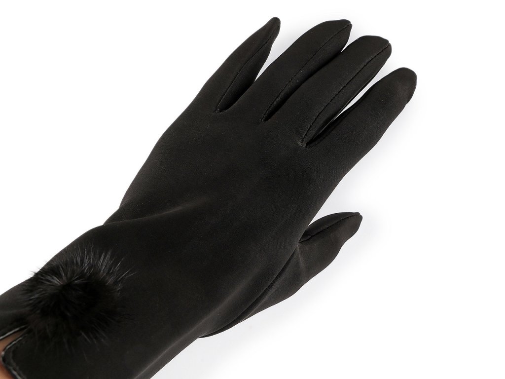 Dámské rukavice s kožešinovou bambulkou přechodní, dotykové