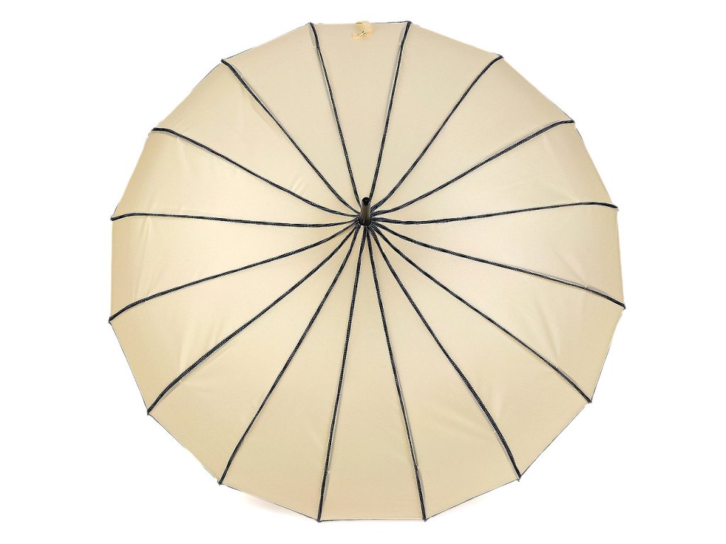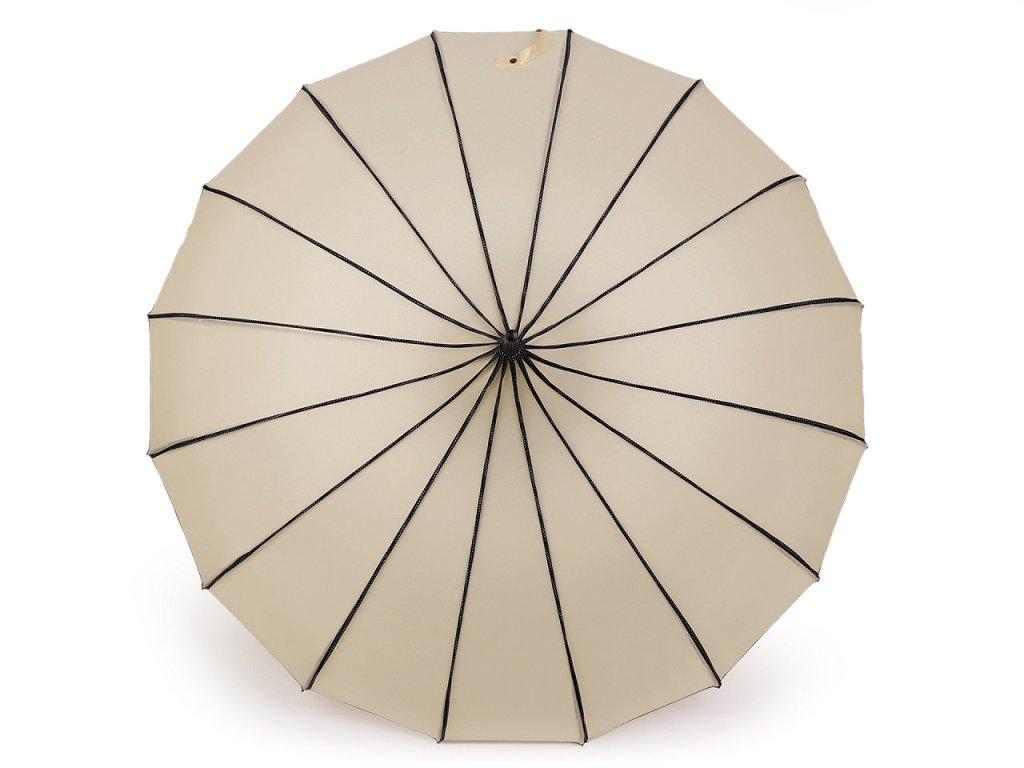 Designový deštník pagoda je díky svému tvaru inspirovanému tradičními pagodami skvělým módním doplňkem. Spolehlivě vás ochrání v nepříznivém počasí. Konstrukce z kovového drátu tvoří 16 polí. Díky ní je deštník velice pevný, neohne se ani za největšího nečasu. Klasickou tyč má zakončenou pevnou rukojetí. Hloubka deštníku je 18 cm + špice nahoru.- Rukojeť: eko kůže