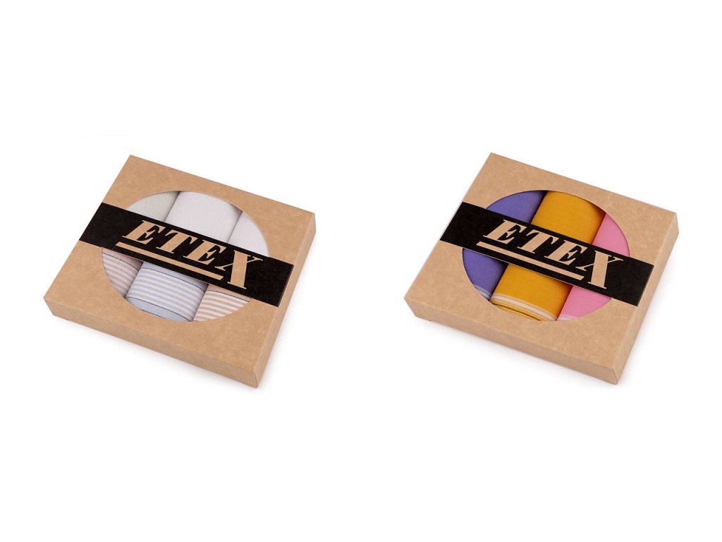 Sada dámských kapesníků je vhodná jako dárek pro ženy, které si potrpí na kvalitu a eleganci. Jsou ideální volbou pro každodenní použití i speciální události. Mají různé dezény od proužků až po káro. Jsou velice kvalitní, oceníte jejich jemnost i dlouhou životnost. Kapesníky jsou zabalené v dárkové krabičce přírodního vzhledu s kulatým průhledem. V krabičce najdete 3 čtvercové kapesníky. Skladba kapesníků se v jednotlivých krabičkách může lišit.- Šířka: 28,5 cm