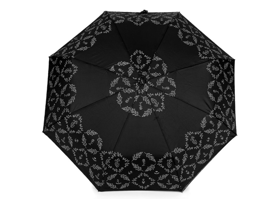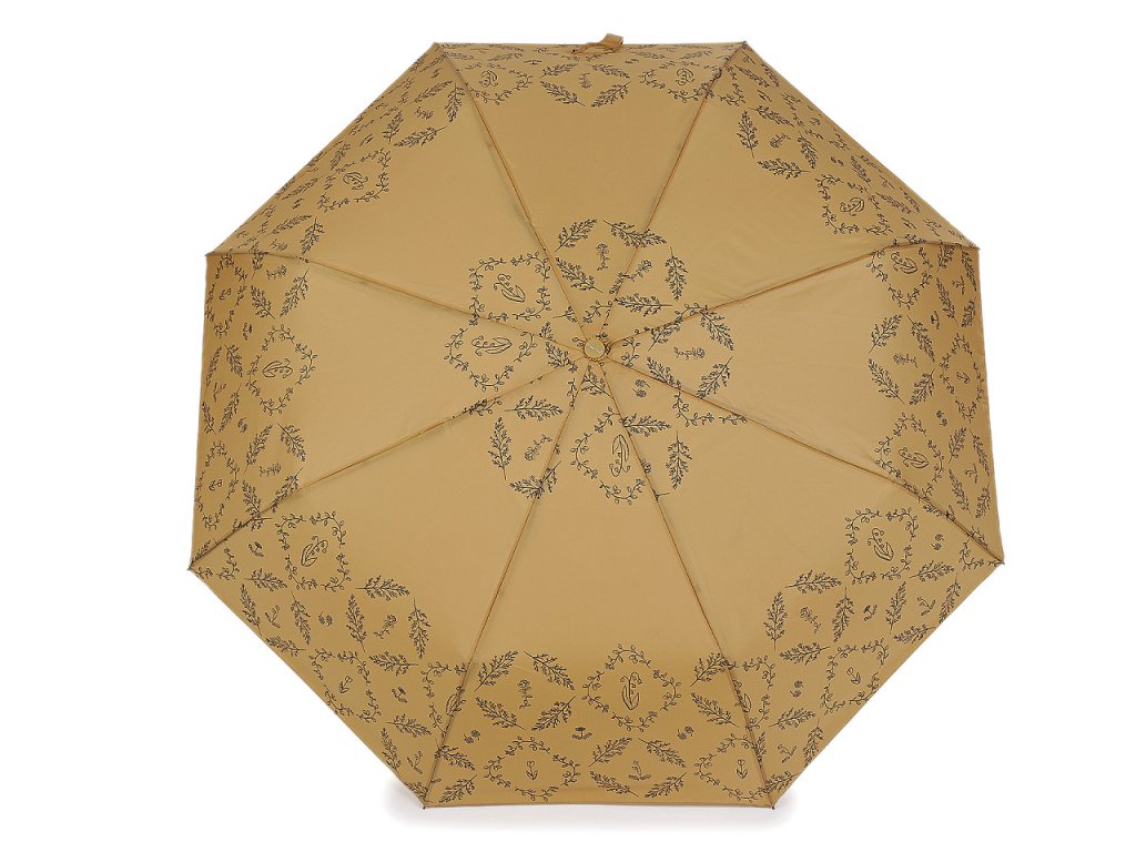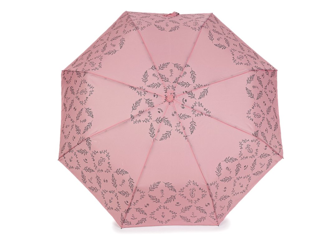 Plně automatický skládací deštník je vyrobený z kvalitního materiálu. Potah deštníku má potisk různých větviček a květů, má uv filtr. Deštník má vystřelovací/sestřelovací mechanizmus. Rozevře i zavře se stisknutím tlačítka se šipkou nahoru nebo dolů. Rukojeť deštníku je plastová, opatřená poutkem. Konstrukce deštníku se skládá z osmi polí. Součástí deštníku je ochranný obal. Hloubka deštníku je 20 cm. Celková délka je 67 cm. Délka složeného deštníku je 28 cm.- Rukojeť: plastová