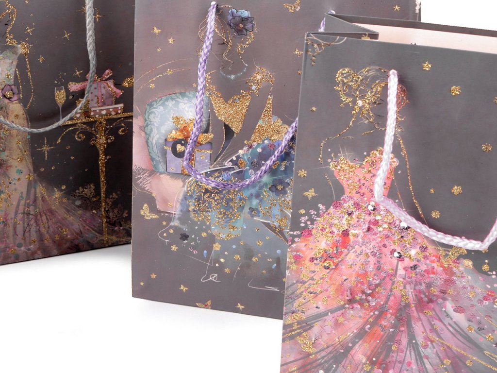 Dárková taška se siluetou dívky je díky glitrů na přední straně velice efektní. Je ideální pro všechny, kteří chtějí rychle zabalit dárek. Je vyrobená z kvalitního křídového papíru, potisk je z obou stran. Ucha tašky jsou ze spletené šňůry.- Rozměry: 18 x 23 x 8,5 cm