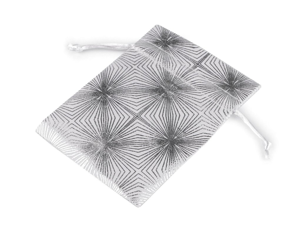 Dárkový pytlík vyniká luxusním geometrickým vzorem v metalickém provedení. Stahuje se pomocí kulaté saténové šňůrky. Skvěle se hodí na drobné dárky, šperky, kosmetiku nebo jiné malé předměty, které chcete obdarovanému předat s elegancí. Je ideální pro narozeniny, svátky, svatby či jiné významné události, kde vyžadujete atraktivní balení.- Šíře: 10 cm