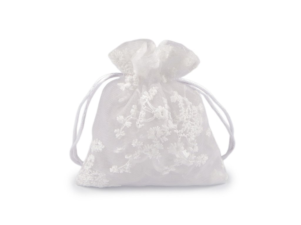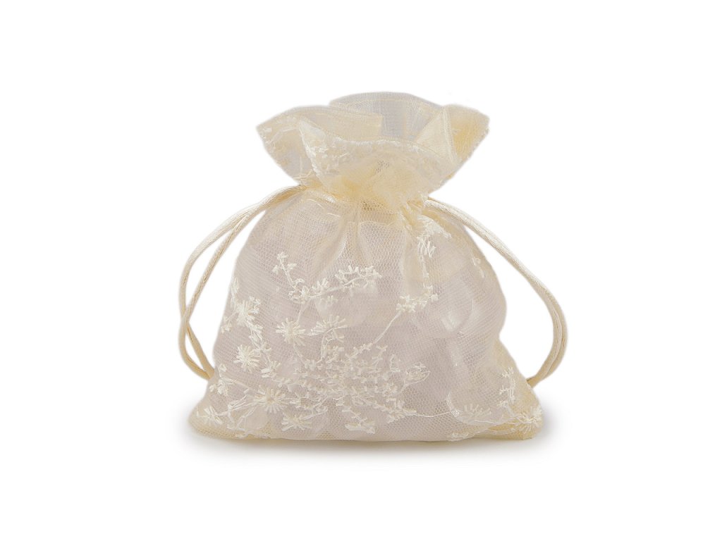 Dárkový pytlík z organzy zdobí strojová výšivka květů. Působí luxusním dojmem, hodí se k zabalení menšího dárku, který povýší na vyšší úroveň. Snadno ho uzavřete pomocí dvou stahovacích saténových šňůrek. Pytlík je vhodný na zabalení dárků, ale můžete do něj uschovat i vaše osobní poklady nebo naaranžovat voňavé sušené květy.- Šíře: 10 cm