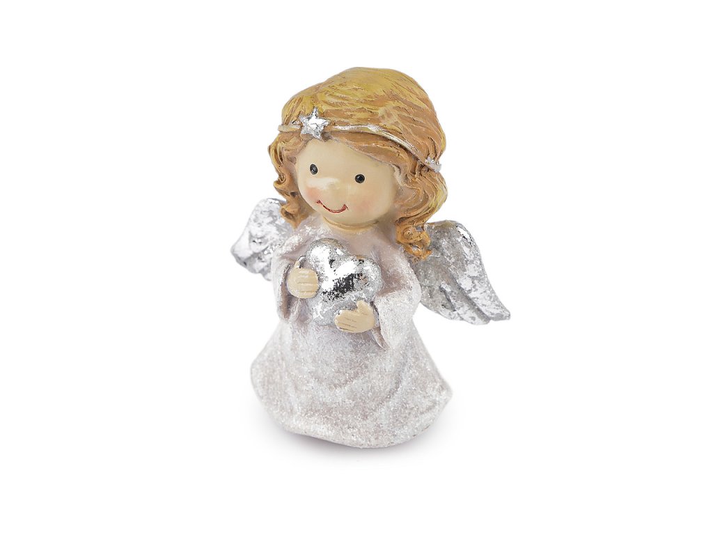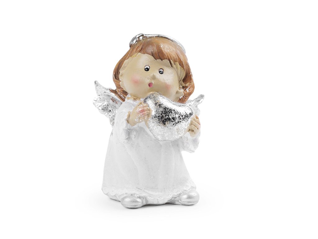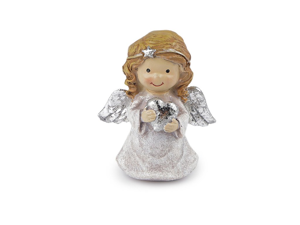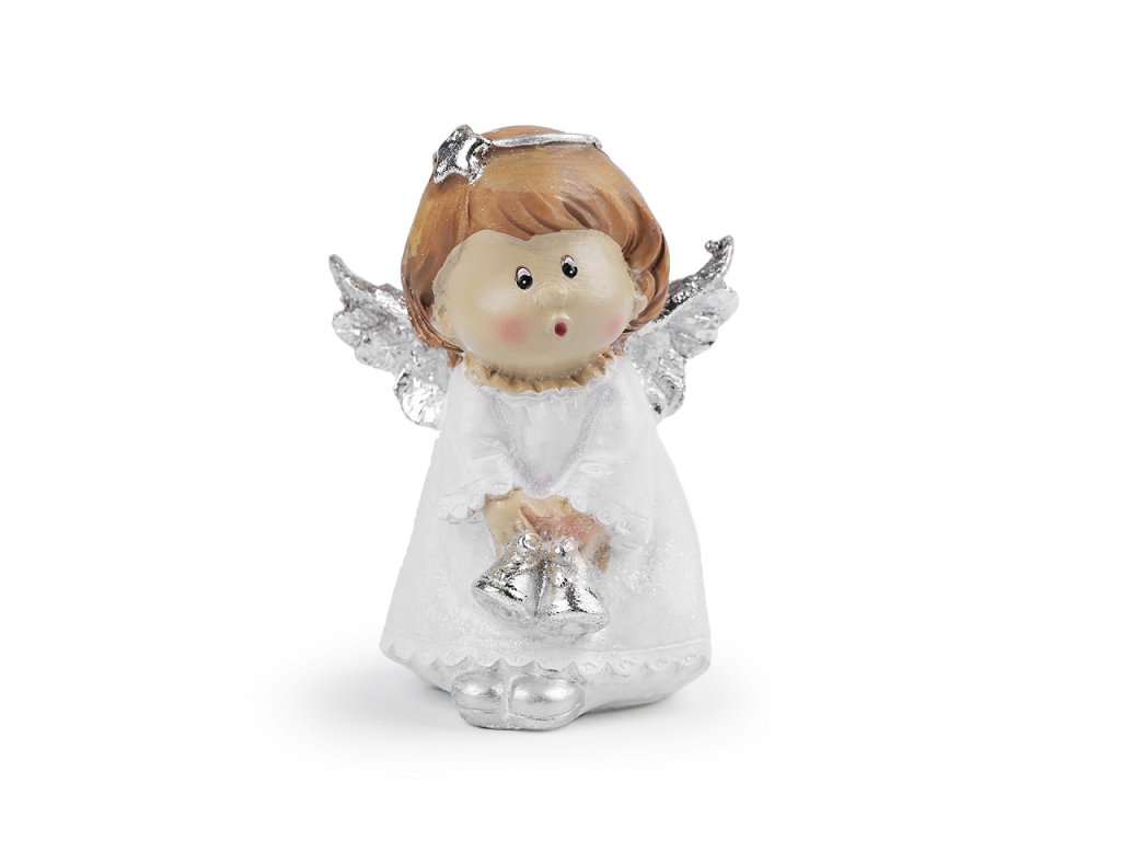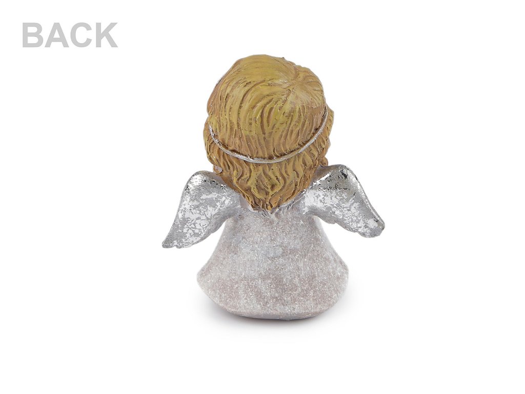 Soška roztomilého anděla je jemně posypaná třpytivými glitry. Díky metalickým detailům bude působivou dekorací i dárkem.- Šířka: 7 cm
