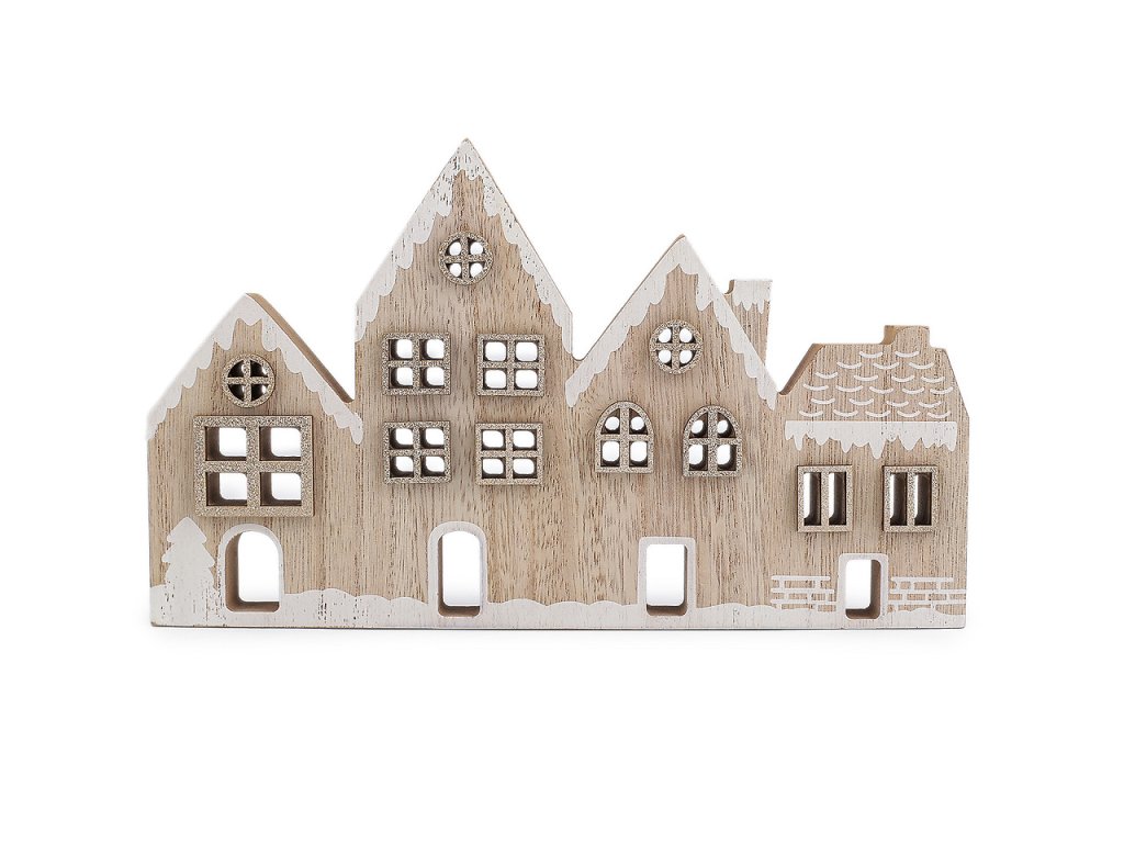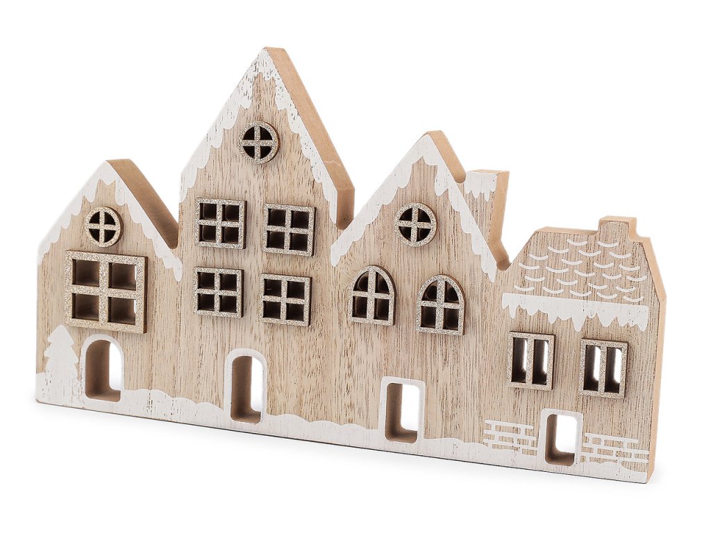 Dřevěné dekorační domečky vyniknou jako stylová zimní dekorace. Můžete je umístit na krbovou římsu, okenní parapet, poličku nebo je dát jako dominantu sváteční tabule. Mají zajímavě zpracované detaily v podobě malby a třpytivých oken.- Rozměry: 23 x 1,8 cm