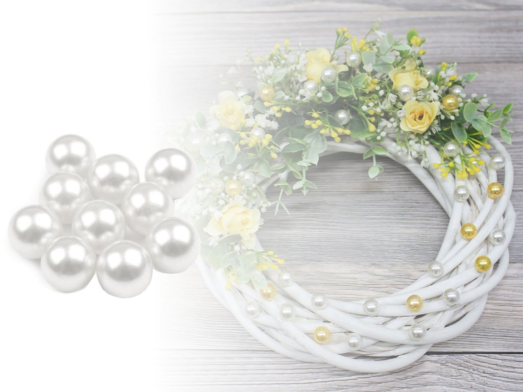 Plastové perly jsou vhodné jak k dekoracím, tak i k výrobě bižuterie. Perly nemají dírky, proto se vlepují. Pro vlepení můžete použít např. náušnicové zapínání. Jako dekoraci možno použít v kombinaci se saténem či organzou k výzdobě slavnostní tabule, do kytic, vypadají dobře i ve skleněné číši. Můžete je nalepit i na polystyrenový věneček či kouli a vytvořit tak dekoraci dle vlastní představy.- Průměr: 8; 10 mm