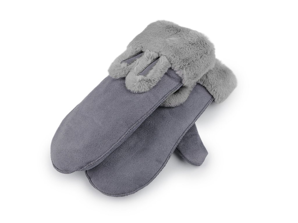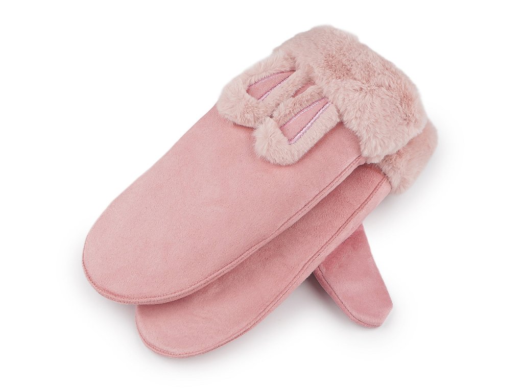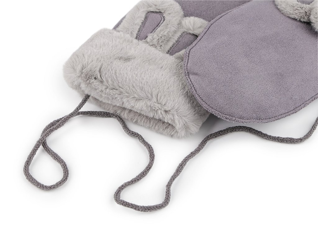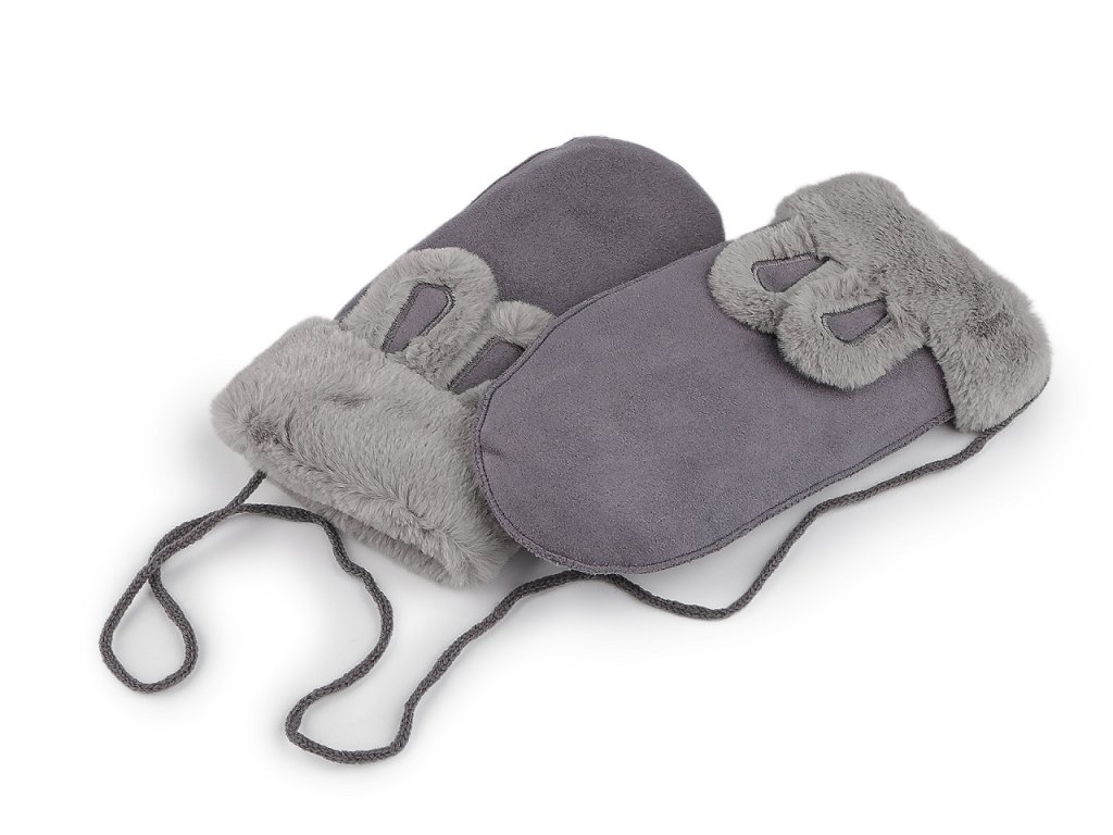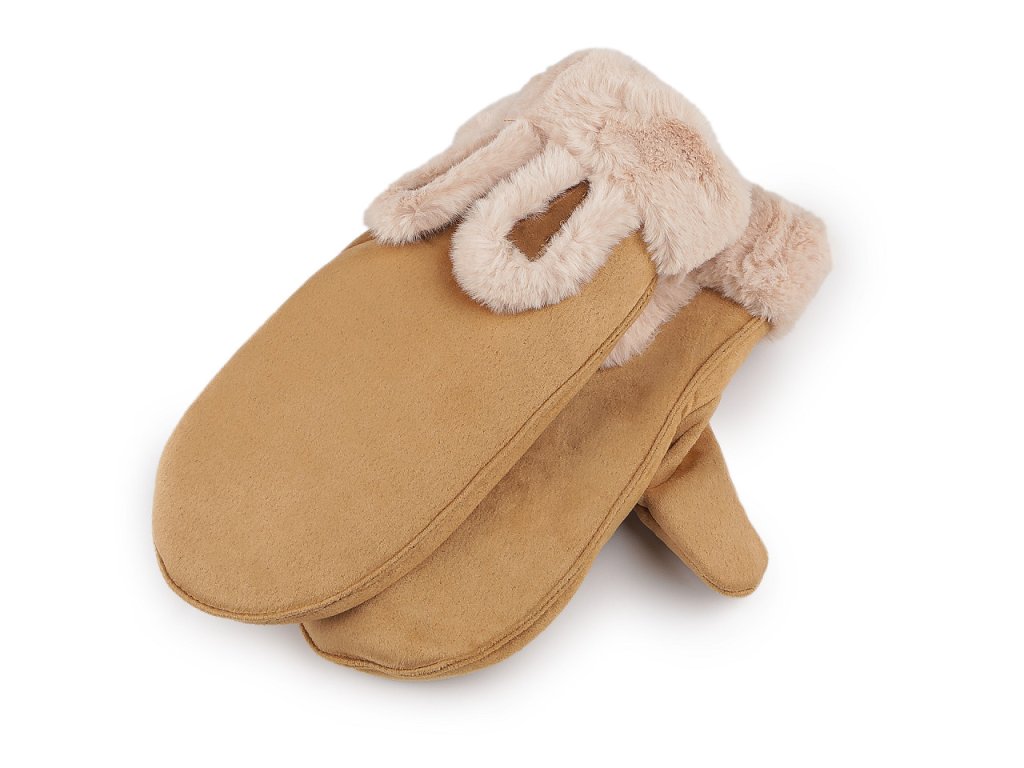 Dětské rukavice palčáky mají na horní straně hravý prvek v podobě králičích oušek a kožešinového lemu z umělé kožešiny. Povrch rukavic připomíná broušenou kůži. Uvnitř jsou zateplené příjemným plyšovým kožíškem. Hodí se do zimy, dětské ruce perfektně zahřejí. Jsou navzájem spojené šňůrou dlouhou 1 metr, která slouží na provlečení rukávy, aby děti rukavice neztratily. Můžete ji odstřihnout pryč. Rukavice doporučujeme pro děti ve věku 8 - 12 let. Šířka je měřená na volně položených rukavicích uprostřed (bez palce).- Šířka: 10 cm