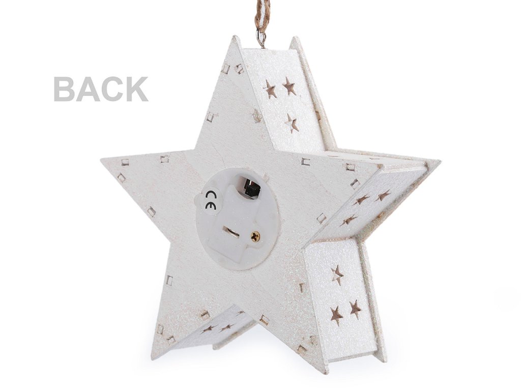 Dřevěná svítící hvězda rozzáří každý interiér. Má poutavě zpracované detaily s výřezy, díky glitrům na povrchu se jemně třpytí a svítí teplým světlem. Baterie jsou součástí balení.- Průměr: 12 cm