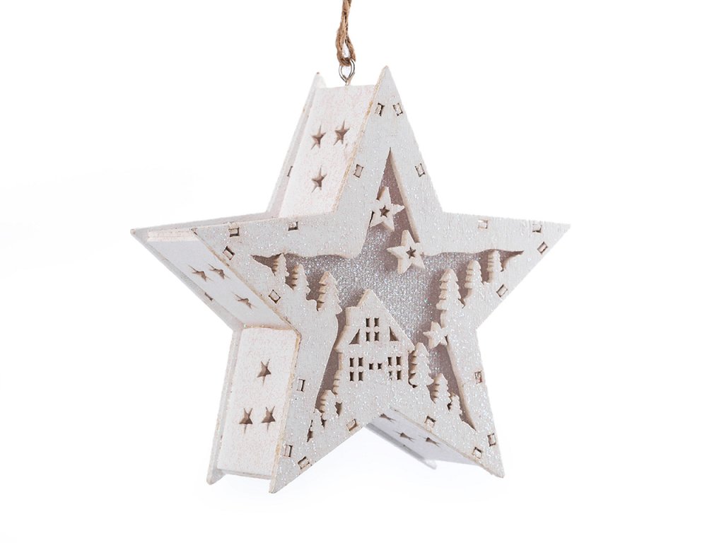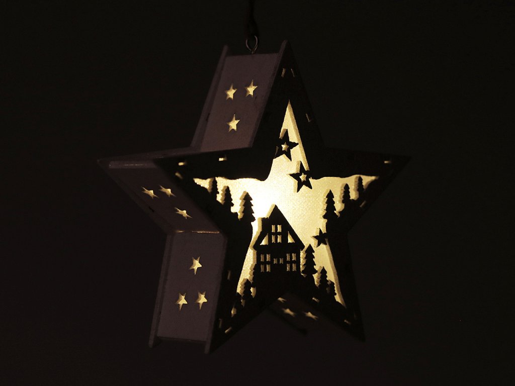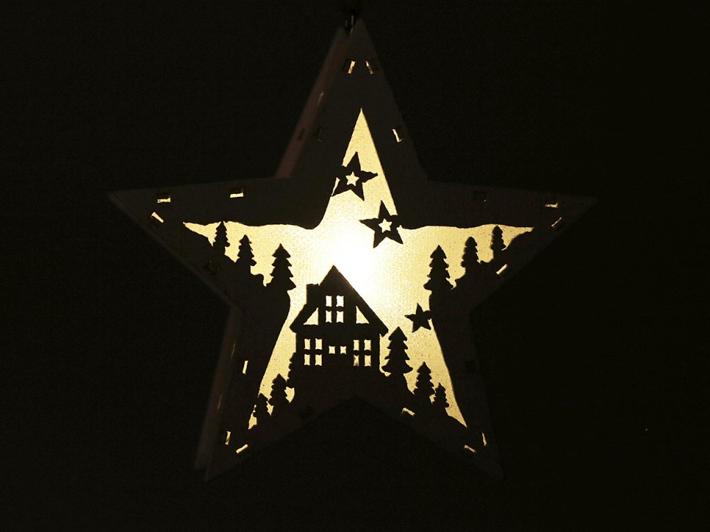 Dřevěná hvězda vánoční svítící k zavěšení