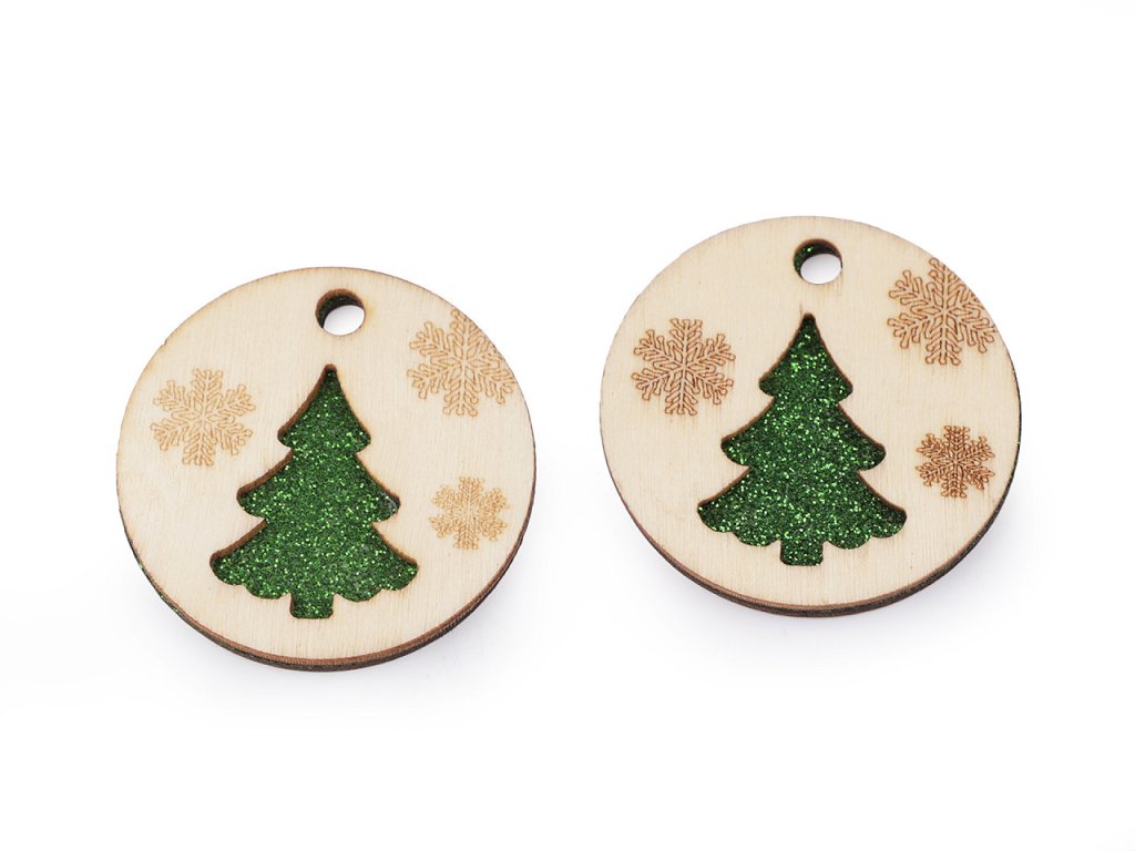 Dřevěné ozdoby vynikají svým zpracováním - jsou slepené ze dvou vrstev, spodní má třpytivé glitry, které pronikají vnitřní vrstvou s výřezem. Ozdoby vyniknou na vánočním stromečku, věnci, dárcích i v oknech. Skrz dírku v horní části můžete provléct šňůrku nebo silon. Jsou jednostranné.- Průměr: č. 1: 5 cm