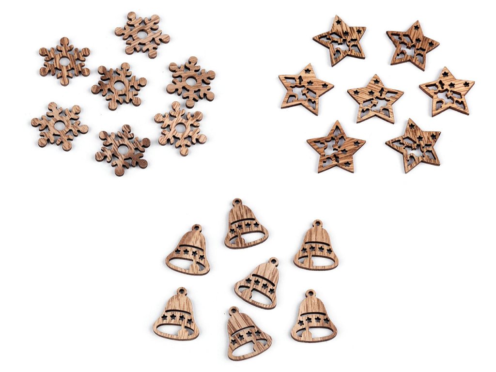 Dřevěné mini vánoční ozdoby můžete nalepit na dárky, věnce, rámečky, pozvánky, jmenovky, dřevěné kolíčky apod. Vlivem výroby se můžou jednotlivé kusy (odstíny dřeva) lišit.- Průměr: cca 30 mm