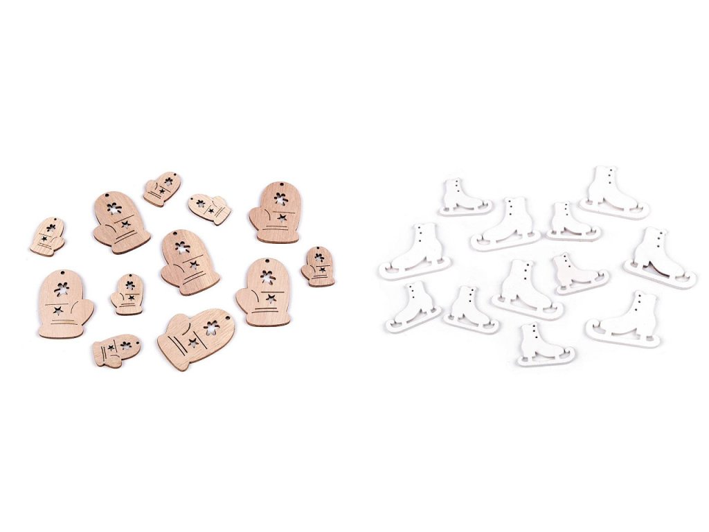 Malé dřevěné ozdoby můžete nalepit na dárky, věnce, alba, rámečky, květináče nebo krabičky. V balení č. 3 najdete dvě velikosti - 3,5 x 2,8 cm (6 ks) a 4,4 x 3,6 cm (6 ks).- Rozměry: 35 x 28 mm