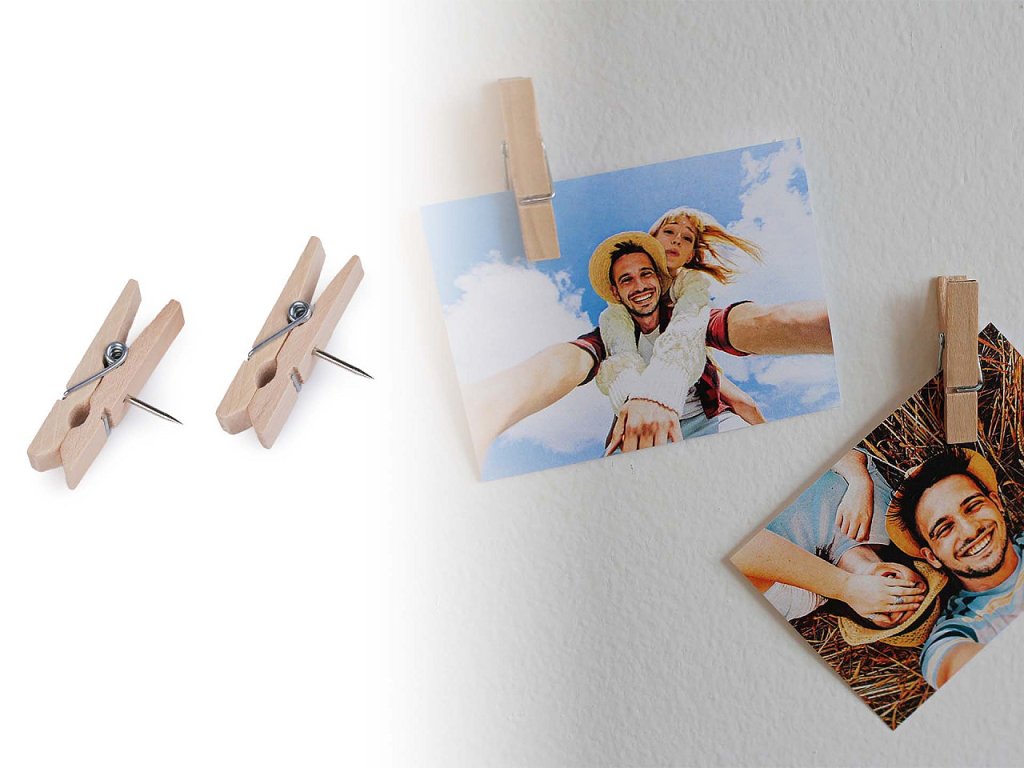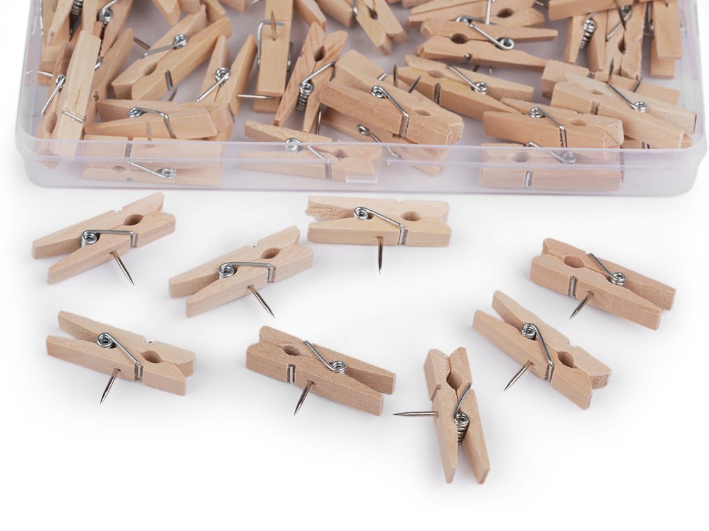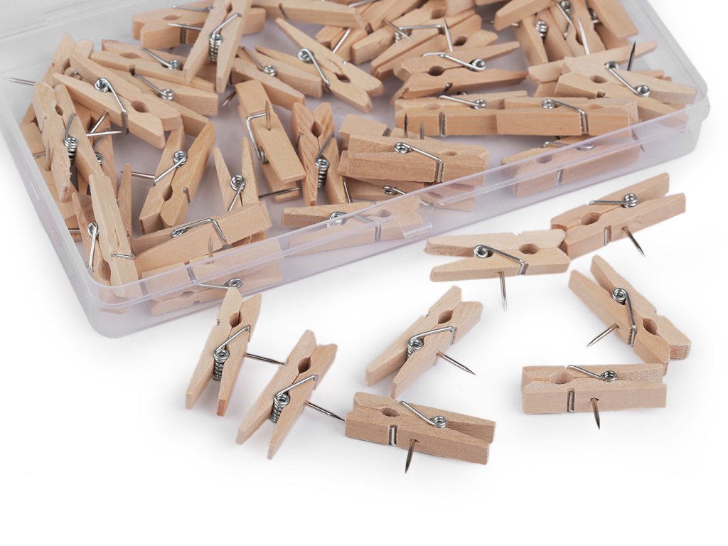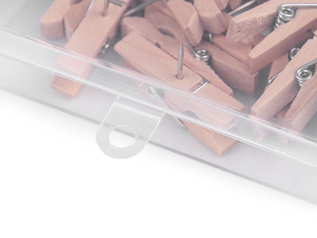 Dřevěné mini kolíčky mají v sobě hřebíček, díky kterému je snadno uchytíte na zeď, do dřeva a na nástěnku. Využijete je na fotografie, dekorace, ale i v kanceláři.Délka hřebíčku je 10 mm. Kolíčky jsou balené v plastovém boxu po 50 ks.- Šířka: 7 mm