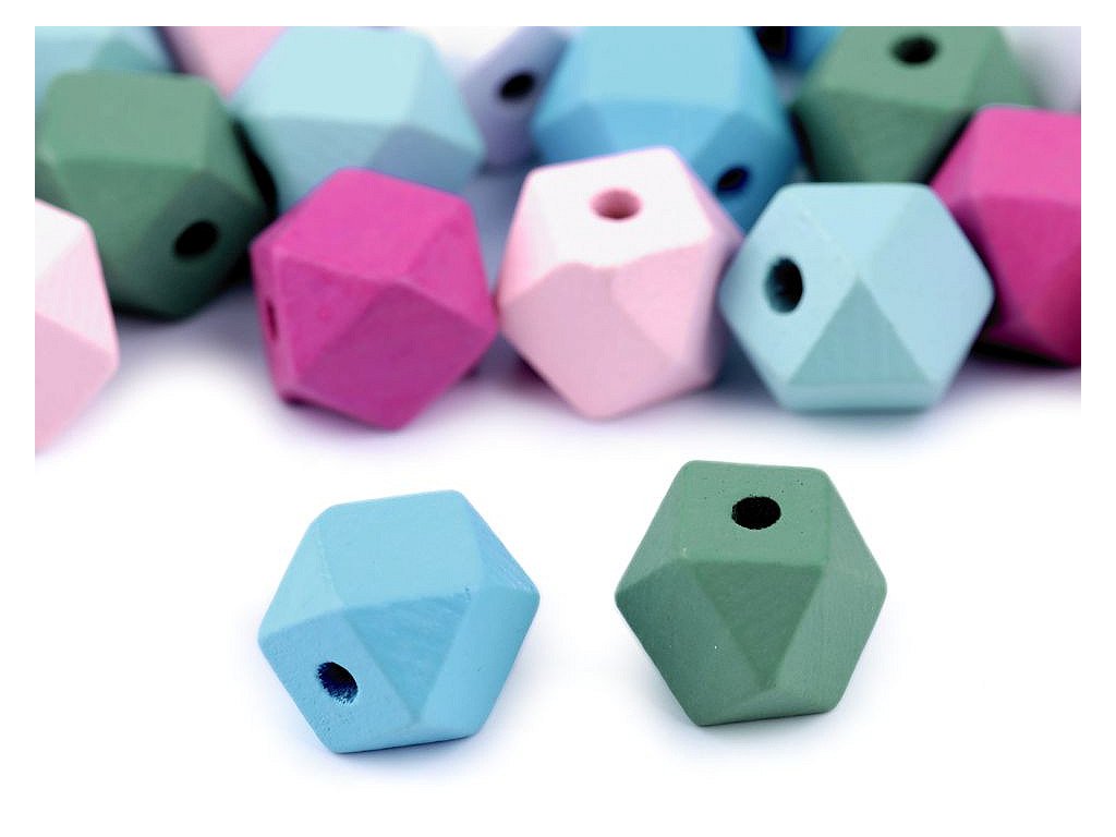 Mix barevných dřevěných korálků ve tvaru diamantu nadchnou všechny kreativní lidi. Můžete je navlékat na silon nebo jiný návlekový materiál. Korálky můžete použít na výrobu náramků, náhrdelníků nebo i na tvorbu přívěsků ke klíčům, kabelce apod.- Rozměry: 15 x 20 mm