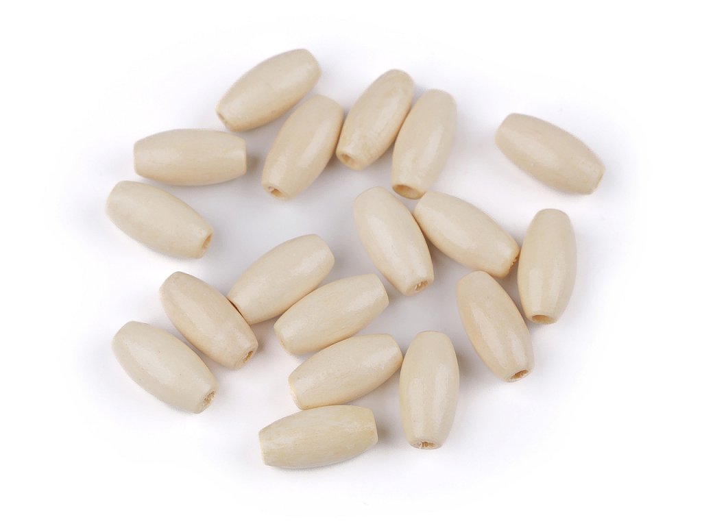 Dřevěné lakované korálky ve tvaru olivy použijete na výrobu náhrdelníků a náramků. Jsou využívané na dámské i pánské šperky. Jsou lehké, hodí se i na dozdobení lapačů snů, tašek, klobouků apod. Můžete je navlékat například na pruženku či silon. V balení 5 g je cca 18 ks korálků.- Průměr: 7 mm