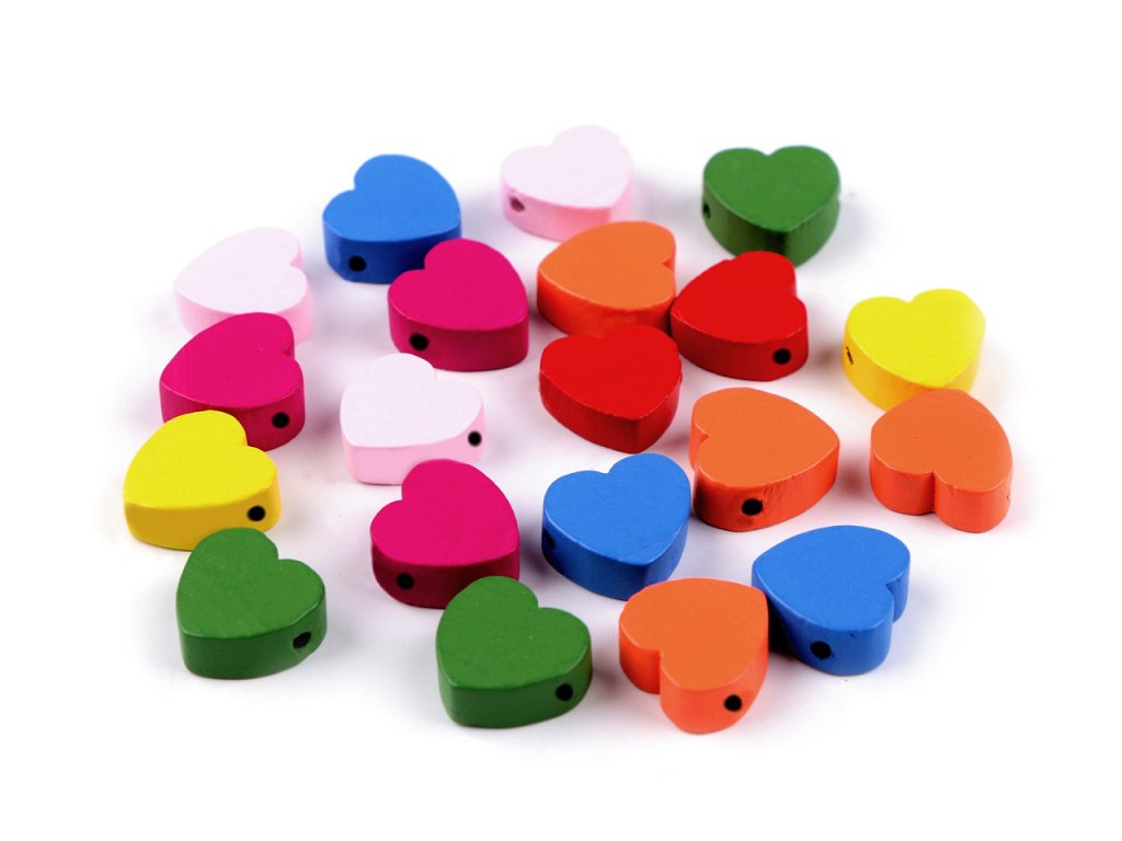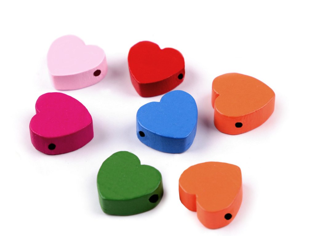 Barevné dřevěné korálky ve tvaru srdce potěší nejen korálkářky, ale i děti. Jejich velikou výhodou je lehký materiál. Dají se skvěle kombinovat s dalšími dřevěnými korálky, s kulatými ale i s dalšími zajímavými tvary. Dají se nalepit i na přání apod. Můžete je navlékat například na pruženku či silon. Děti si mohou sami navléci jednoduchý náramek z pruženky, srdíčka se budou krásně řadit vedle sebe.- Průměr: 15 mm