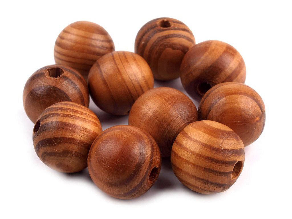 Dřevěné korálky s výraznou kresbou dřeva. Jsou vyrobené z borovice. Korálky nejsou lakované, ale napuštěné speciální lazurou, aby struktura dřeva ještě více vynikla. Průvlek cca 4 mm.- Průměr: 20 mm